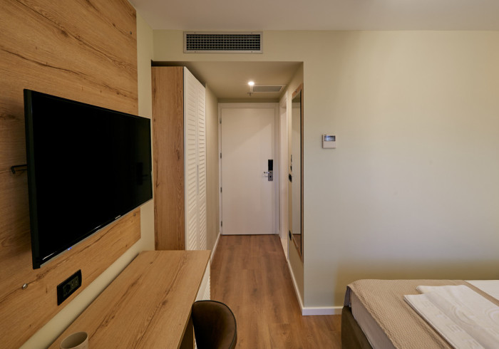Готель пропонує різні категорії для розміщення та комфортного відпочинку туристам. Всі номери оформлені у сучасному стилі та мають якісне обслуговування. У кожному номері є окремий туалет, кондиціонер, телефон, міні-холодильник, диван або крісло та балкон зі столом та 2 стільцями, в основному з видом на море. Цей готель має такі категорії номерів, як: