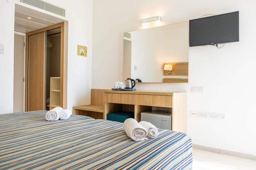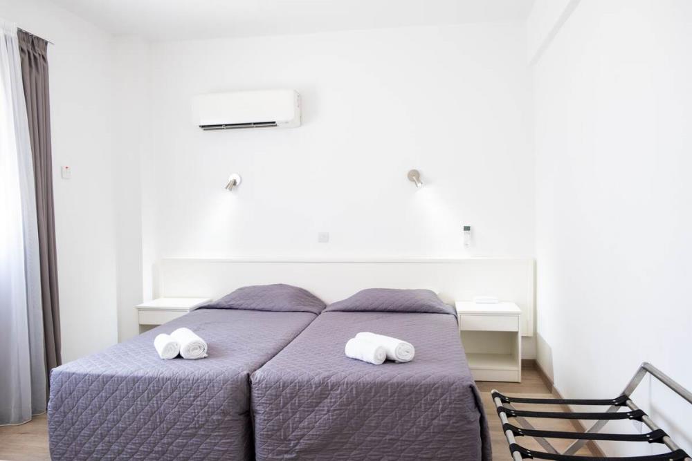 Single/Double Standard Rooms Площа: 20 кв. Ліжка: 2 Твін(и) Місткість: максимум 3 особи (можуть розміститися двоє дорослих та двоє дітей). Номер з видом на море, балконом, власною ванною кімнатою, ламінованою підлогою, кондиціонером, сейфом, телевізором, феном, холодильником, чайником, Wi-Fi. У номерах можуть розміститися щонайбільше двоє-троє дорослих. Можливе розміщення двох дорослих та одну дитину. У всіх номерах з дітьми ліжко є розкладним ліжком. Двоспальне ліжко надається за запитом. На запит надаються номери із суміжними дверима. Superior Rooms Площа: 23 кв. Ліжка: 1 односпальна(і), 2 односпальні(і) Місткість: максимум 3 особи (можуть розміститися двоє дорослих та двоє дітей). Номери підвищеної комфортності являють собою номери з видом на море, балконом, ванною кімнатою трохи більшої площі, ніж стандартні номери, кондиціонером, ламінованою підлогою, шпалерами, телевізором, феном, телефоном з прямим набором номера, міні-холодильником і чайником. Family Rooms (Main Building) Площа: 38 кв. Ліжка: 1 односпальна(і), 2 двоспальні(і) Місткість: Макс. 4 (можуть розміститися двоє дорослих та двоє дітей) Номери з видом на море ідеально підходять для сімей, зі спальнею батьків і окремим туалетом. Окрема вітальня ідеально підходить для людей, які хочуть мати свій простір. Ванна кімната та туалет. Обидві кімнати з ламінатом та загальним балконом, невелика кухня. Кондиціонер, сейф, телевізор, фен, холодильник, чайник, Wi-Fi у всіх номерах. У номерах можуть розміститися щонайбільше троє дорослих. Двоє дорослих у головній спальні та двоє дітей у вітальні можуть розміститися на односпальних та двоспальних розкладних диванах. One Bedroom Apartments (Annexe) Площа: 40 кв. Ліжка: 3 односпальні ліжка, 1 односпальне ліжко Місткість: Макс. 5 В апартаментах з однією спальнею встановлені два односпальні ліжка та окрема вітальня. Вони ідеальні для всіх, особливо для сімей. У цих апартаментах є балкон і ванна кімната з душем. Вони оснащені зручностями для приготування їжі, такими як дві електричні плити та кухонне начиння. Максимальна місткість номера цього типу – до 4 осіб. Двоспальні ліжка в номерах цієї категорії не надаються.