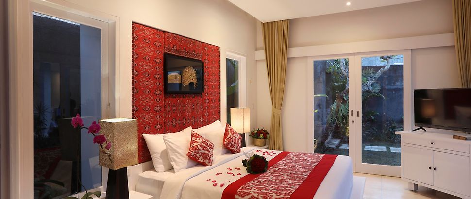 Three Bedroom Pool Villa ( збудована на площі 520 м2., дорослі: 6, Діти: 3). у великому саду він уособлює острівну елегантність. Це свіжа та приваблива обстановка, де ви та інші відпочиваючі можете розслабитись у справді актуальному стилі. Призначений для комфортного сну до шести дорослих гостей Two Bedroom Pool Villa (побудований на 520 м2., дорослі: 3. Діти: 3)., пропонує відкриту житлову площу, 2 спальні з ліжком розміру "king-size" та ванну кімнату, обідню зону та окрему кухню, а також просторий приватний басейн, кушетку та парасольку біля басейну, дерев'яну палубу та великі тропічні відкритих садів. Інтер'єр світлий, повітряний, з високими стелями та нейтральний. One Bedroom Pool Villa Premier (площею 210 м2., дорослі: 2,Діти: 1)оспівує дух кохання завдяки білому декору та сміливим червоним акцентам. Приголомшливий витвір мистецтва над ліжком є парою традиційних весільних головних уборів, які балійські пари носять у день весілля. Напіввідкрита ванна кімната з розкішною ванною, досить великою для двох. One Bedroom Pool Villa Цей ексклюзивний варіант розміщення (площа 180 м2. дорослі: 2,Діти: 1) із сучасним дизайном та індивідуальним підходом обіцяє вам ідеальний відпочинок під час відпустки. У номерах кондиціонер, безкоштовний Wi-Fi, фен, сейф в номері, міні-кухня.