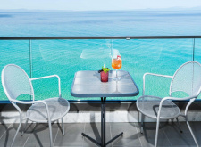 Типи номерів Всього в готелі 126 номерів в одному п'ятиповерховому будинку: Deluxe Room Garden View (21 кв.м, макс 3) відремонтовані, одна спальня відкритого планування, ванна кімната з душем, вид на сад, двоспальне ліжко 1.6 x 2.0 або 2 окремі ліжка 0,90 x 2,00, сейф у номері безкоштовно , Wi-Fi у номері, чайник (кава не включена), фен, 2 шезлонги та 1 парасолька на пляжі Premium Deluxe Room Sea View (21 кв.м, макс 3) відремонтовані, одна спальня відкритого планування, ванна кімната з душем, вид на море, двоспальне ліжко 1.6 x 2.0 або 2 окремі ліжка 0,90 x 2,00, сейф у номері безкоштовно, Wi-Fi в номері, чайник (кава не включена), фен, 2 шезлонги та 1 парасолька на пляжі Premium Deluxe Room Sea View/Garden View (21 кв.м, макс.3) відремонтовані, розташовані на верхньому поверсі з панорамним видом на море або на сад, додаткове банне приладдя, халати та капці, двоспальне ліжко 1.6 x 2.0 або 2 роздільні ліжка 0,90 x 2,00, сейф у номері безкоштовно, Wi-Fi у номері, чайник (кава не включено), фен, 2 шезлонги та 1 парасолька на пляжі, пляшка вина в подарунок, заповнений міні-бар по заїзду безкоштовно, ламінат на підлозі Premium Deluxe Suite Two Rooms Sea View (43 кв.м, макс. 4+1) окрема спальня та вітальня, дві ванні кімнати з душем У номерах Індивідуальний кондиціонер.ТБ, ванна кімната/душ. Туалетне приладдя. Холодильник або міні-бар (за запитом). Сейф електронний (безкоштовно). Телефон. Фен. Балкон. Wi-Fi інтернет (платно). Щоденне прибирання номерів, 2 пляшки води безкоштовно у номері по заїзду, зміна білизни раз на 3 дні, зміна рушників раз на 2 дні Додаткові послуги для номерів Premium: заповнений міні-бар з прохолодними напоями, водою та пивом, ваучер на масаж 15 хвилин, вітальний напій, пляшка вина, знижка 10% на відвідування ресторану Greco's, покращене банне приладдя та прилади для приготування чаю