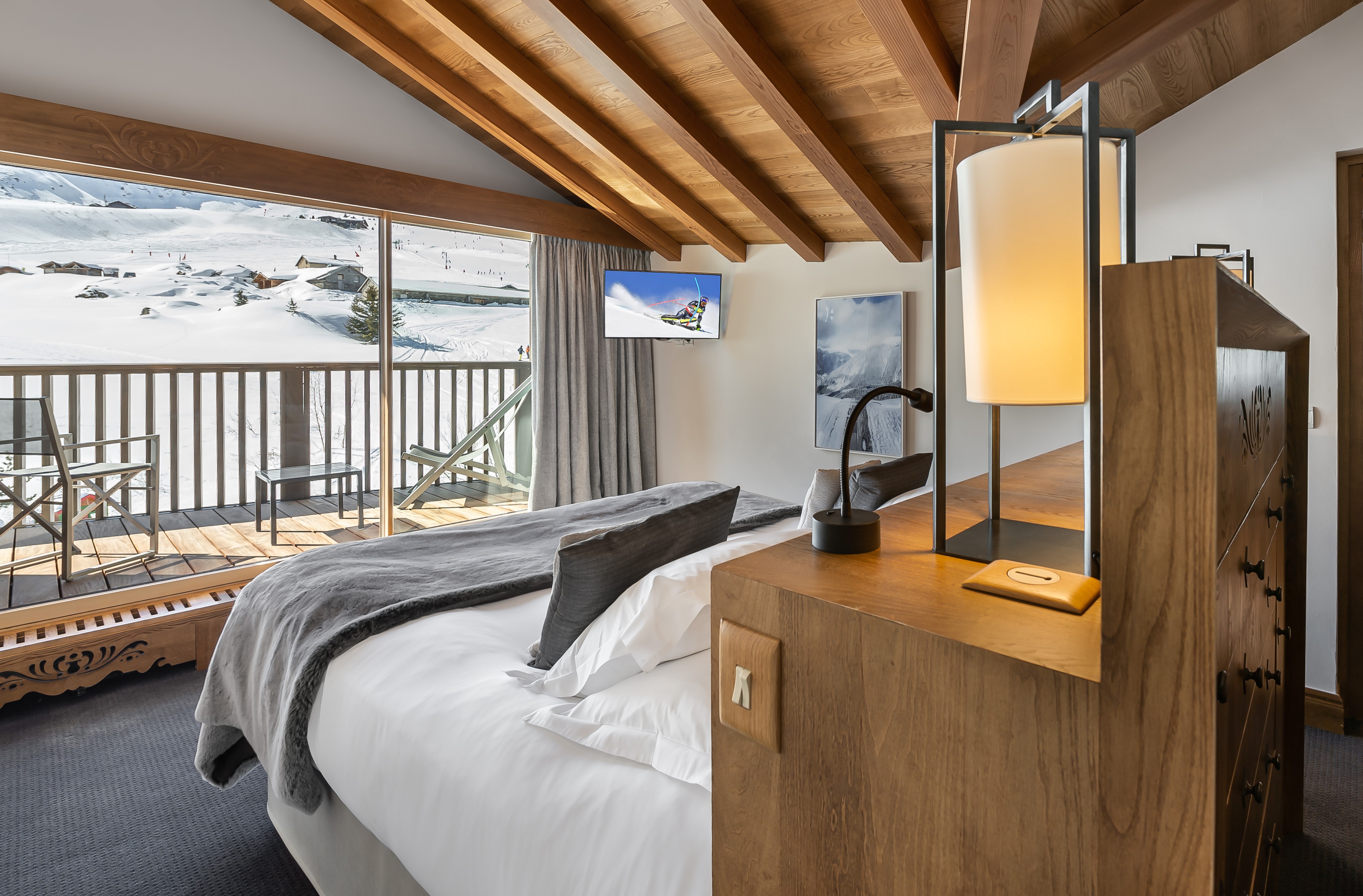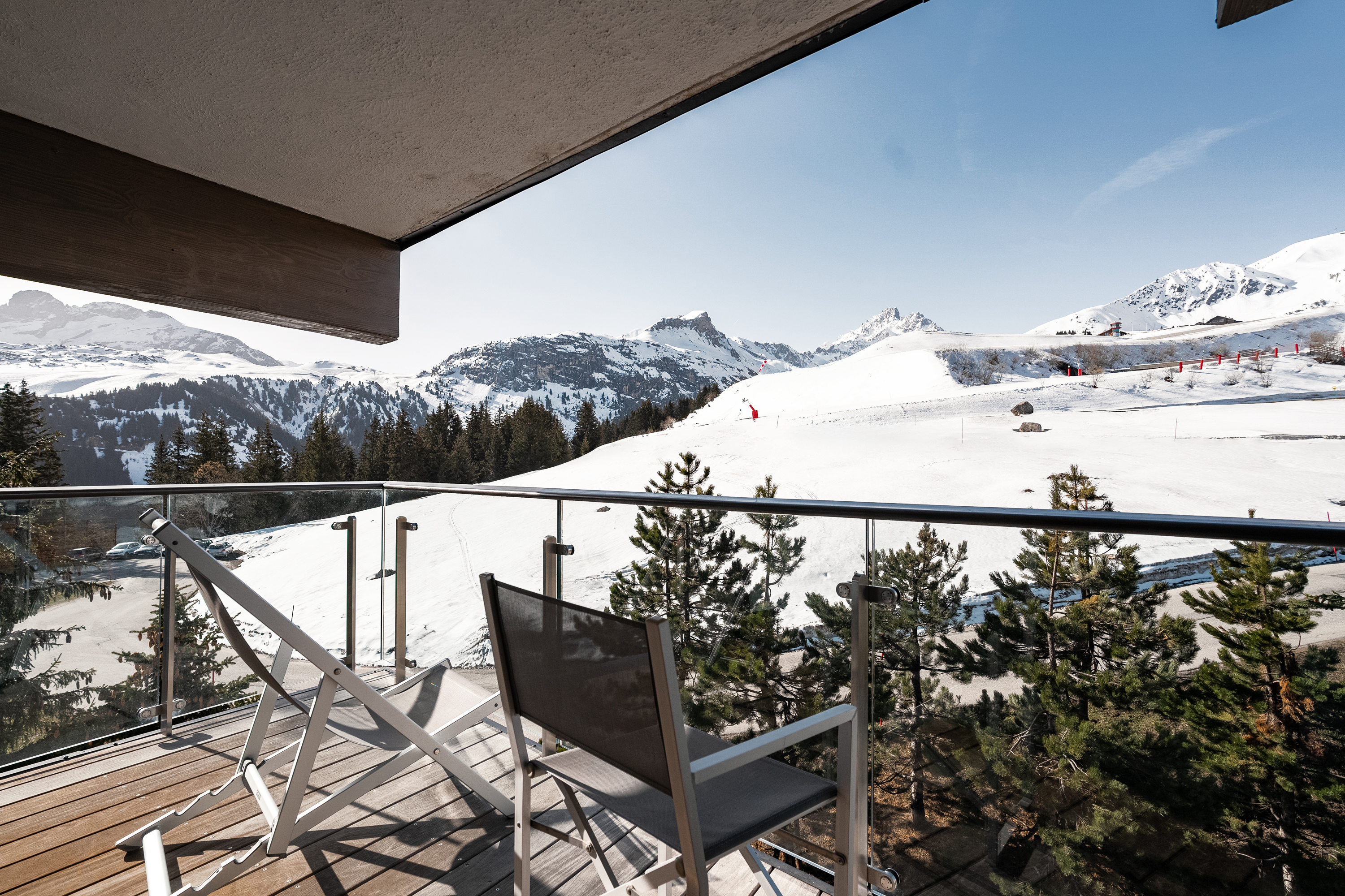 Standard Double Room Площа 26 м², без балкона. Двухмісні номери з ванною декоровані світлим деревом. Вид з вікон – на долину. Saulire Double Room Площа 30 м² з видом на юг. Двухмісні номери з ванною декоровані світлим деревом. В більшості кімнат є балкони. Family Apartment(Interconnecting Rooms) Площа номера близько 56 м².Складаються з Saulire Double Room з видом на південь і Standard Double Room з видом на схід чи захід (кожен номер з ванною). Junior Suite Площа номера близько 44 м².Розташовані на південній стороні з балконамі. Складаються з салону з балконом і видом на південь, спальні і з ванної кімнати. Suite Annapurna Площа номера близько 60 м².Складається з холу, вітальні, двомісній спальні і ванної кімнати. Балкон з видом на південь. Makalu Suite Площа номера близько 65 м² Оформлений в сучасному елегантному стилі, розташований в новій частині готелю, під традиційного альпійського дахом. Складається із спальні з двоспальним ліжком, вітальні з обідньою зоною, ванни і туалетної кімнати, розташованих в мезоніні, балкона з видом на долину. Додатково в номері – 2 телевізори, DVD player. Suite К2 Площа номера близько 94 м² Розкішний номер, розташований в новій частині готелю, під традиційниим альпійським дахом. Складається з холу-передпокою, вітальні з каміном, обідньої і робочої зонами, спальні з двоспальним ліжком, просторої ванної кімнати з ванною, душовою кабіною та сауною, балкона, виходящегона південну сторону. Додатково в номері – 2 телевізори (один – з плазмовою панеллю), DVD player. Suite Everest Площа номера близько 149 м² Розкішний номер, розташований в новій частині готелю, під традиційного альпійського дахом. Складається з холу-передпокою, вітальні площею 51 м2 з каміном, робочої і обідньої зонами, ще однією вітальні в мезоніні, 2 спалень з двоспальними ліжками, 2 ванних кімнат з ванними і душовими кабінами (одна – з сауною і вікнами), балконів, які виходять на південну і західну сторони. Додатково в номері – телевізор (з плазмовими і LCD екранами), DVD player.В номері: балкон або без балкона, сейф, міні-бар, телефон, високошвидкісна інтернет-лінія, багатоканальне супутникове телебачення, фен.