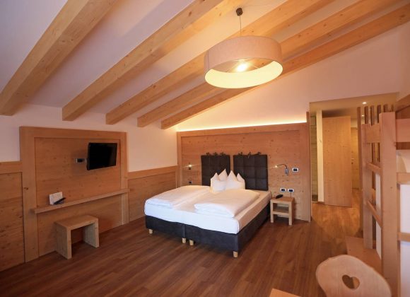 MOUNTAIN SUPERIOR FAMILY Комфортний чотиримісний номер з дерев'яними меблями, розділений дерев'яною стіною з розсувними дверима, дерев'яна підлога. 34-36 м2, балкон - деякі з панорамним видом на Вернель (Мармолада), м'які гіпоалергенні ковдри (з можливістю класичного італійського ліжка з простирадлами, ковдрами та покривалами), двоспальне або два односпальні ліжка