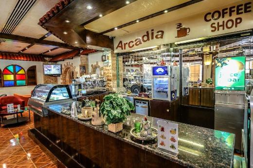 Arcadia Café- розташована у вестибюлі, кав'ярня "Аркадія" слугує одночасно і кав'ярнею, і пунктом швидкого харчування. Зі свіжою кавою та різноманітною свіжою випічкою це чудове місце для відпочинку або зупинки для перезарядки після денних пригод.