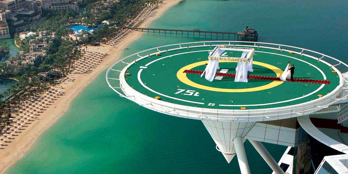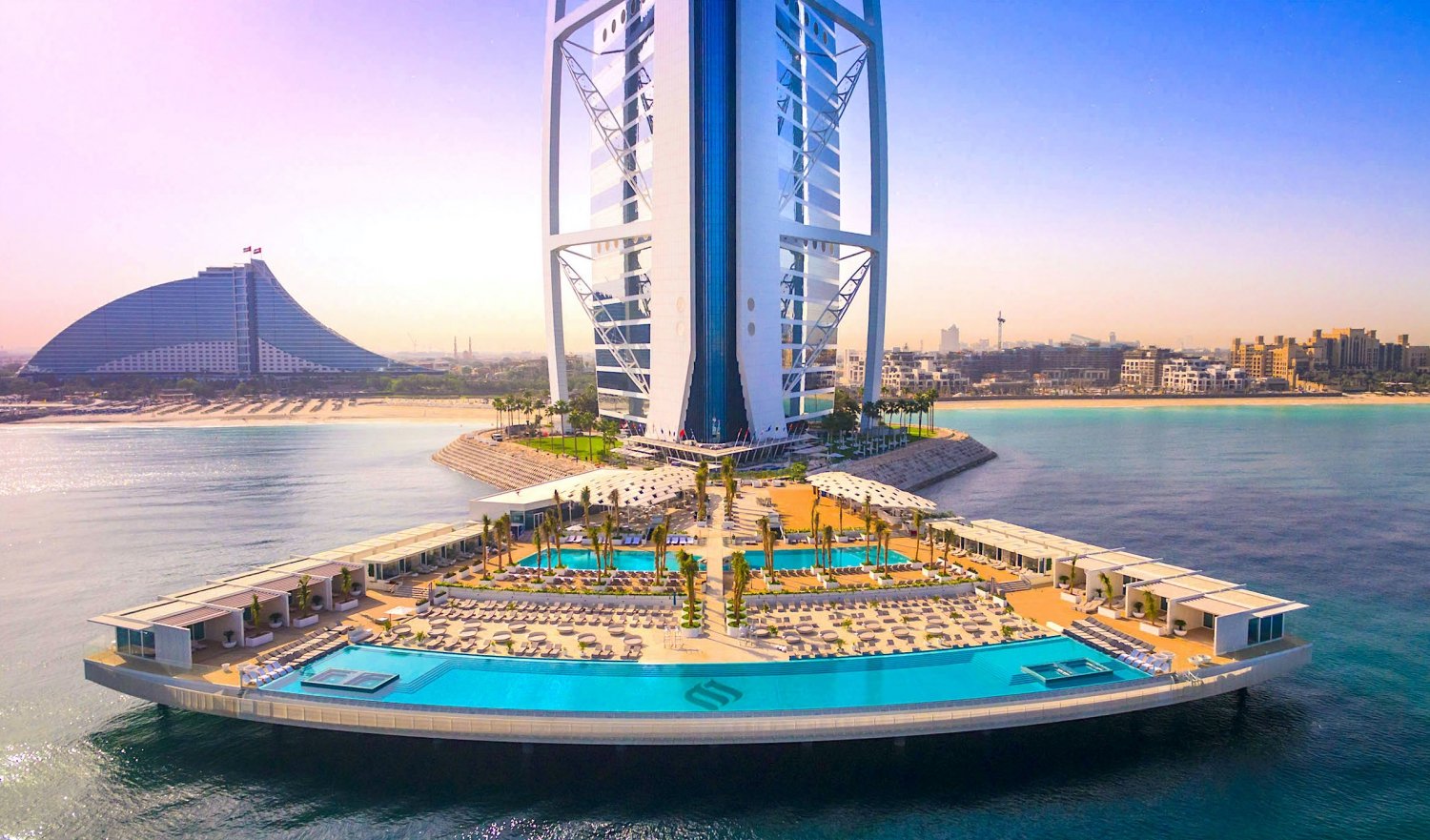 Готель є частиною комплексу Jumeirah Beach Resort, розташованого за 15 км на південь від Дубая. Підносячись над Перською затокою на 321 м, готель Burj Al Arab є найвищим готелем у світі. Це унікальна за своєю архітектурою 28-поверхова будівля, з вертолітним майданчиком на останньому поверсі. Будівля готелю Burj Al Arab побудована у формі вітрила і стоїть на штучно зведеному острові за 280 м від берега. До готелю Burj Al Arab веде міст, який закінчується фонтаном. Об'єднуючи останні технології з здавна відомою східною гостинністю, Burj Al Arab є символом Дубая і надає гостям воістину бездоганний сервіс. У холі Burj Al Arab немає звичної стійки реєстрації. У готелі класу "люкс" гостей реєструють індивідуально.