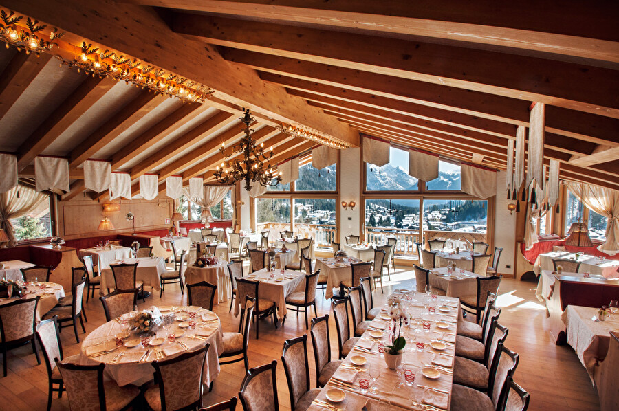 Сніданок із 07.30 до 10.30. Смачні та енергійні сніданки «шведський стіл», засновані на солодких та солоних стравах ручної роботи, з перевагою місцевих, свіжих та натуральних продуктів. Ароматні булочки з багатим смаком, домашні джеми, йогурт з наших гірських хатин, хрумкий підсмажений хліб із смачною яєчнею та чудовим беконом, свіжі сезонні фрукти, вітамінні соки, корисні соковижималки та все, що ви можете побажати, щоб упоратися з труднощами.Вечеря з 19:30 до 22:00. Caruso Lounge Bar- лаунж-барі Caruso завжди готовий вітати вас, навіть для ритуалу післяобіднього чаю або альпійських трав, що відновлює настою, який можна випити в поєднанні з невеликими ремісничими примхами, тут Ви можете розслабитись, спробувавши широкий вибір смачних коктейлів у супроводі невеликих вишуканих закусок та приємних музичних розваг.