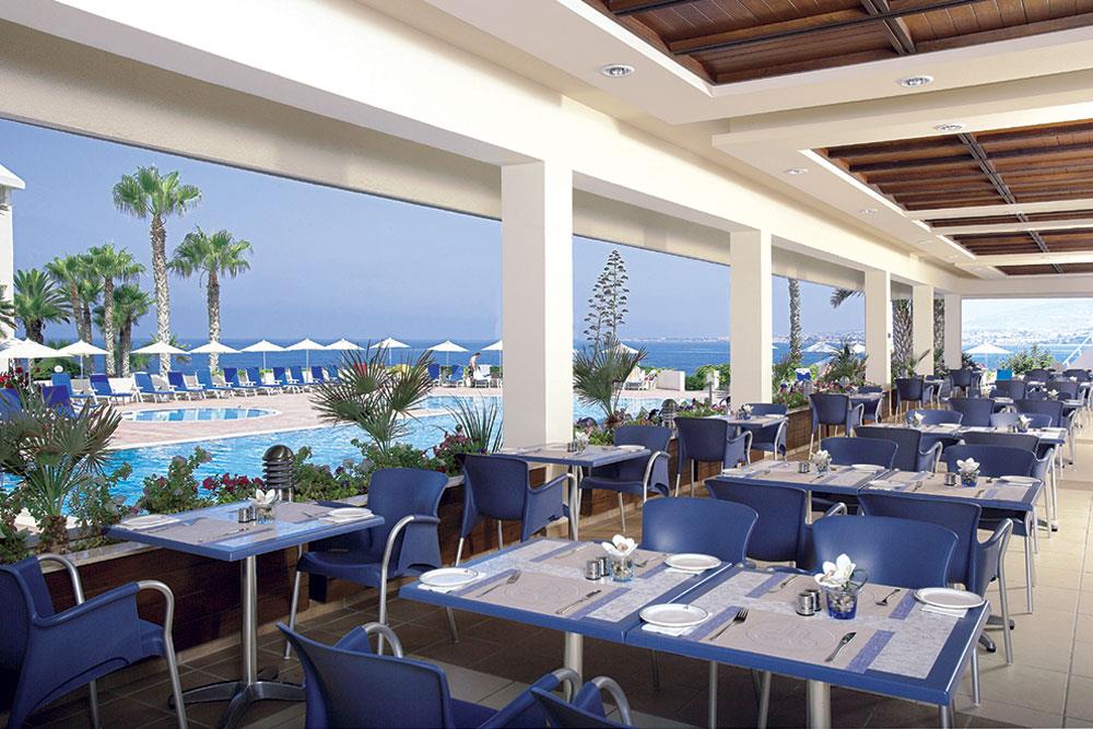 Artemis Restaurant Це головний ресторан готелю, де ви можете насолодитися вишуканими стравами та повним сніданком. Увечері ви зможете побувати на тематичних вечорах готелю, таких як традиційна кіпрська ніч із живою музикою та танцями, шведський стіл, китайська ніч, італійська ніч тощо. Iris Restaurant Розташований в олімпійському крилі, він служить для сніданків у готелі, ресторан також пропонує широкий вибір напоїв і закусок, даючи вам можливість насолодитися захоплюючим видом на затоку. Mythos Snack Bar Розташований біля басейну. Це елегантний бар, де можна розслабитися і помилуватися чудовим панорамним видом на Середземне море. Насолоджуйтесь обідом, шведським столом або меню а ля карт, свіжоприготовленими бутербродами, зеленими салатами, що хрумтять, а також прохолодними напоями і багатьом іншим Olympian Bar Це бар біля басейну в олімпійському крилі, тут ви можете відпочити та поплавати, насолоджуватися сонячними променями та холодними напоями. Beach Bar Бар розташований поряд з морем, тут ви можете відпочити протягом дня, насолоджуючись улюбленими напоями та різноманітними напоями.