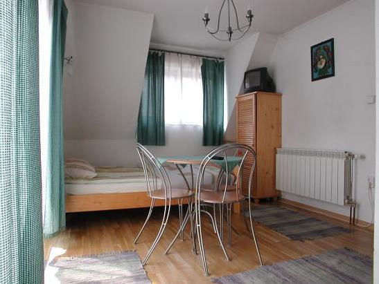 Домик для 5 человек: на 1 этаже – зал с камином, спутниковое TV, кухня; на 2 этаже - 2 номера (DBL + TRPL) с удобствами на блок.