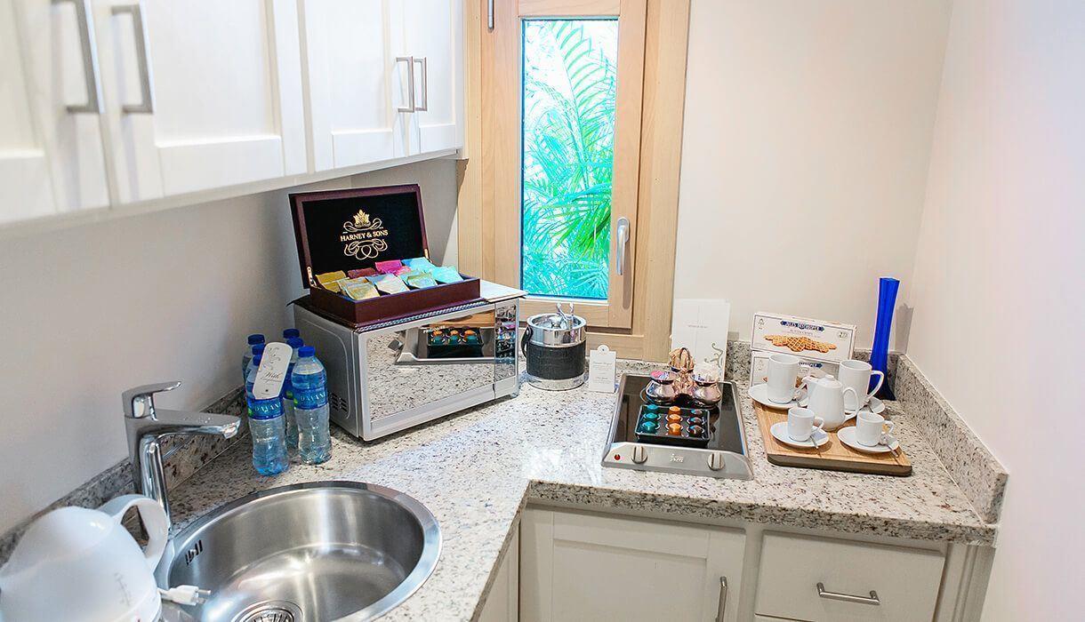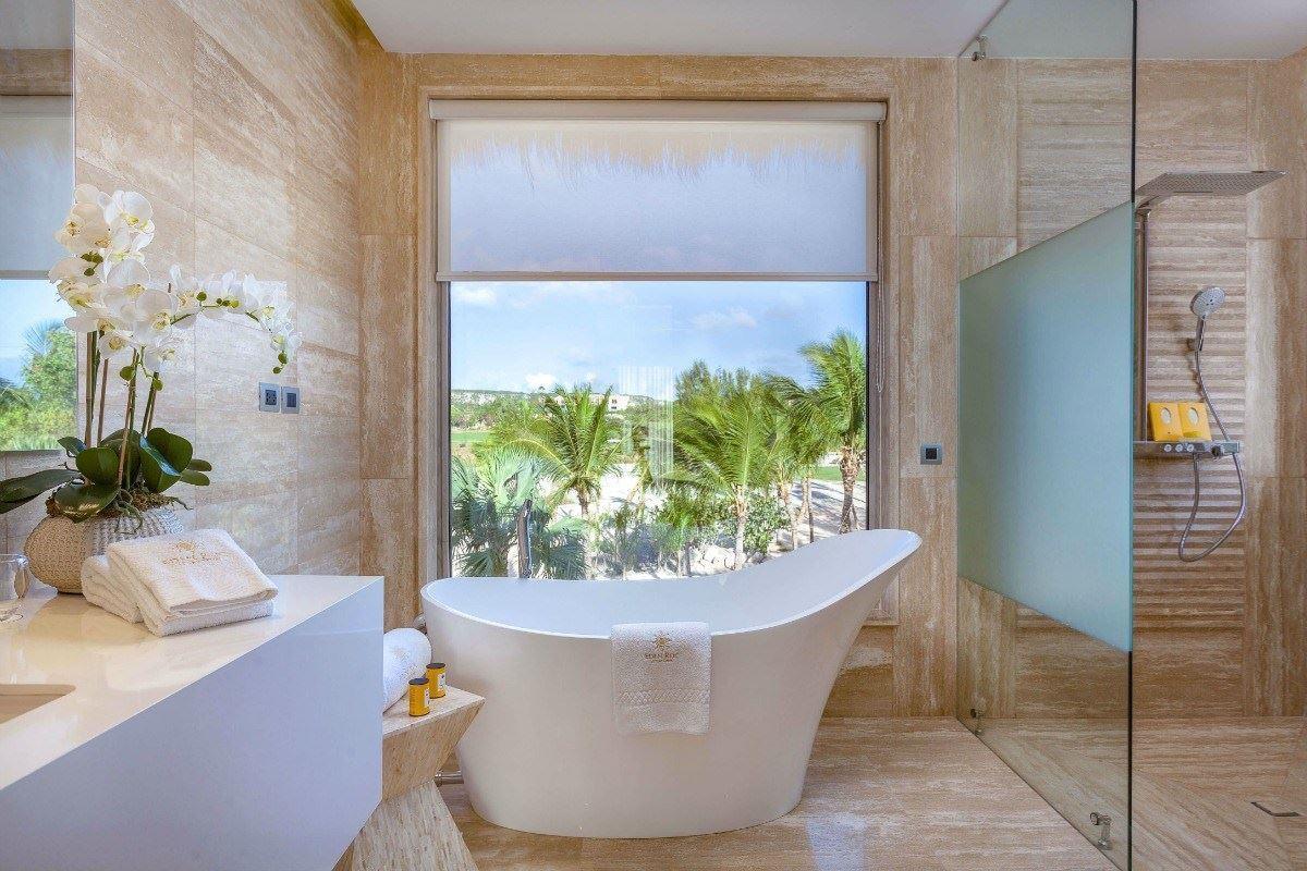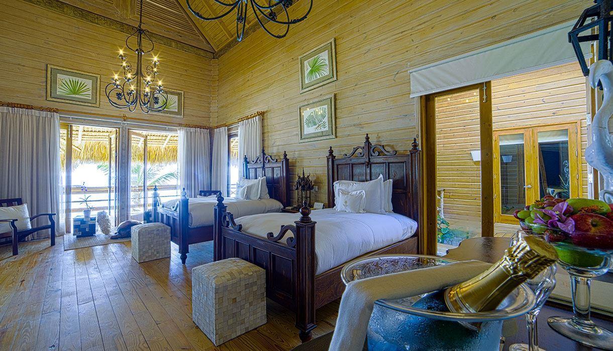 Загалом у комплексі 32 окремо розташованих сьюти, 2 вілли та 26 сьютів з видом на океан. Просторі люкси оформлені у французькому, італійському та іспанському стилях та оснащені за останнім словом техніки. Крім того, кожен з них має власний відкритий басейн та альтанку. Luxury Pool Junior Suite (77 м2, для романтичного відпочинку, вид на басейни або сад, ліжко king size та зона відпочинку з розкладним диваном, мармурова ванна з джакузі, зона для масажу та зона відпочинку з тропічним душем, приватний басейн та внутрішній двір з альтанкою , гольф-кар для переміщення курортом, макс. 3+0 чол.) Luxury Pool One Bedroom Suite (102 м2, для пар, що подорожують з дитиною, вид на басейни або сад у лагуні, окрема вітальня, ліжко king size, два ліжка queen size або два односпальні, мармурова ванна, окремий душ та джакузі, зона для масажу та зона відпочинку з тропічним душем, приватний басейн та внутрішній двір з альтанкою, гольф-кар для переміщення курортом; макс. 3+0 чол.) Luxury Pool Family Suite (123 м2, для сімей з дітьми до 12 років, вид на басейн або сад, головна спальня з ліжком king size, яка з'єднується з додатковою спальнею для дітей, окрема вітальня з диван-ліжком, мармурова ванна, окремий душ та джакузі, зона для масажу та зона відпочинку з тропічним душем, приватний басейн та внутрішній двір з альтанкою, гольф-кар для переміщення курортом; макс. 3+2 чол.) Two Bedroom Family Residence (вид на басейни; люкс на першому поверсі площею 185,50 м2 з головною спальнею з двоспальним ліжком та другою спальнею з двома ліжками розміру queen size; люкс на другому поверсі площею 239 м2 з двома спальнями (головна спальня з двоспальною) і друга спальня з двома односпальними ліжками), простора вітальня, міні-кухня, дві ванні кімнати з мармуровими ваннами, окремий душ і джакузі, зона для масажу та зони відпочинку з тропічним душем; для переміщення курортом, для сімей, що подорожують разом, або пар, які відпочивають у компанії друзів; макс. 5+0 чол.) Three Bedroom Royale Villa (376,20 м2, триспальний дуплекс з видом на сад; головна спальня з двоспальним ліжком на першому поверсі та дві спальні на другому поверсі з ліжками розміру queen size та двома односпальними; вітальня та кухня; три ванні кімнати; окремий душ та джакузі, зона для масажу та зона відпочинку з тропічним душем, басейн вільної форми з джакузі у внутрішньому дворику із зоною відпочинку; два гольф-кари для переміщення по курорту; Four Bedroom Imperial Villa (577,60 м2; дворівневий чотириспальний люкс; вид на басейни; три спальні з двоспальними ліжками та одна спальня з двома ліжками queen size; вітальня та кухня; чотири ванні кімнати; сауна та приватний спортзал; зона для масажу та зона відпочинок з тропічним душем, басейн «інфініті» з джакузі та зоною відпочинку, чотири гольф-кари для переміщення курортом, макс. Beachfront One Bedroom Suite (111 м2, вид на океан, приватна тераса або балкон, ліжко king size, суміжна вітальня, мармурова ванна; макс. 3+0 чол.) Beachfront Two Bedroom Suite (166 м2, вид на океан, приватна тераса або балкон, ліжко king size та два ліжка queen size, мармурова ванна; макс. 5+0 чол.) У номерах: праска: є, косметичні речі, ванна, кондиціонер: є, телевізор: плазмова панель, халат, ТБ: супутникове, Інтернет: Wi-Fi, безкоштовно, фен: є, iPod (док-станція), сейф: є, телефон, радіо, кавоварка (Nespresso), room service: цілодобово, міні-бар, капці.