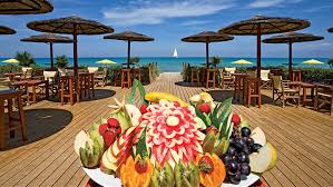 Ресторан Piazza Popolare: система «шведський стіл», сніданок-обід-вечеря, середземноморська кухня Ресторан Beach Club: система a la carte, обід-вечеря, необхідне бронювання Ресторан All-Day Beach Club Grill House: закуски, салати, паста, піца в обідню пору Gelateria, Лаунж-бар: 17.0-01.00, вина, коктейлі, закуски, Бар біля пляжу Odysseus: 10.30-18.00, напої, кава, екзотичні напої. Дитяча зона: попкорн, чіпси, безалкогольні напої (самообслуговування) На території діє дрес-код