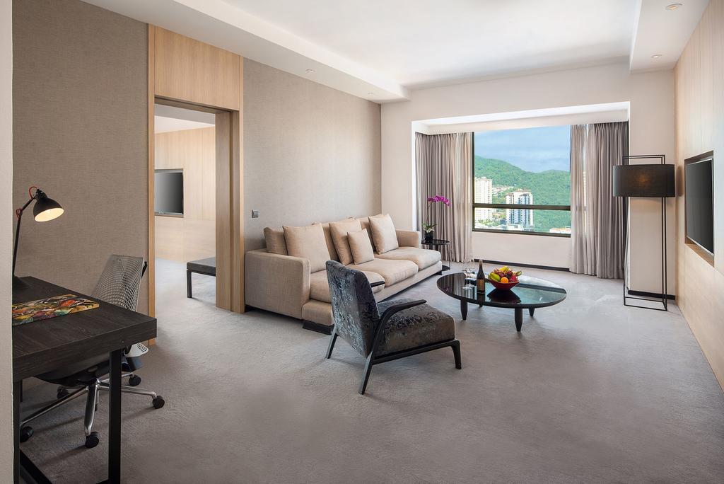 Всего в отеле 304 номера, выполненных в минималистском стиле, в монохромной цветовой гамме (в спокойных нейтральных тонах). Окна номеров выходят на красивое побережье. Категории номеров: Standard Room, Superior Room, Deluxe Room, Executive Suite Room, Honeymoon Suite, G-Suite, Duplex, 1 Bedroom Serviced Apartment, 2 Bedroom Serviced Apartment. В каждом номере есть:кондиционер, телевизор со спутниковыми каналами, рабочий стол, телефон, сейф, мини-бар, набор для приготовления чая/ кофе; в ванной комнате с ванной и душем есть полотенца, халаты, тапочки и фен.