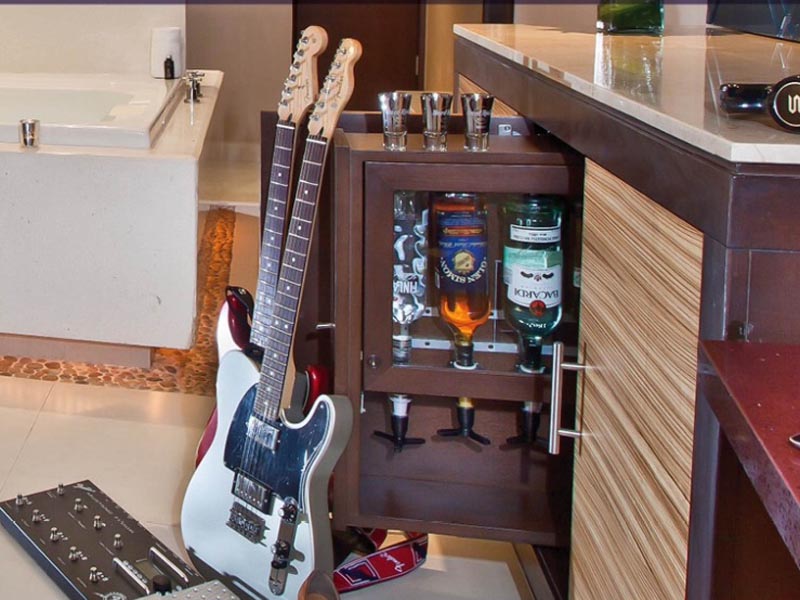 У готелі 1775 номерів: Islander Junior Suite (макс. 4+0 чол., 75,71 м2) вид на сад або лагуну, спальня та зона вітальні без дверей, ліжко розміру King-size або два двоспальні ліжка, диван-ліжко; Caribbean Suite (макс. 4+1 чол., 72,55 м2) розташовані недалеко від головного лобі, вид на сад, спальня та зона вітальні без дверей, ліжко розміру King-size або два двоспальні ліжка, балкон; Caribbean Sand Suite (макс. 4+0 чол., 72,55 м2) розташовані ближче до пляжу, вид на сад або басейн, спальня та зона вітальні без дверей, ліжко розміру King-size або два двоспальні ліжка, балкон; RRL Caribbean Sand Suite (макс. 2+0 чол., 72,55 м2) розташовані ближче до пляжу, вид на сад, басейн або частковий вид на море, спальня з ліжком King-size та зона вітальні без дверей, послуги Rock Royalty Level ; Є номери Caribbean Suite для людей з обмеженими можливостями. У номерахroom service: цілодобово (безкоштовно), зміна рушників: за запитом, зміна білизни: щодня, годинник (з радіо та будильником), прибирання номера: щоденно, кондиціонер: є (з пультом керування), turn down service, праска: є, джакузі (у кімнаті), Інтернет: Wi-Fi, безкоштовно, косметичні приналежності (ексклюзивна косметика Rock Spa), прасувальна дошка: є, халат, телефон (з прямим виходом), сейф: у номері, безкоштовно, балкон або тераса, капці, душ (подвійний), міні-бар безкоштовно (з прохолодними напоями, соками, водою, пивом), кавоварка, фен: є, телевізор: LCD, лікер-диспенсер з ромом, віскі, текілою та горілкою (безкоштовно).