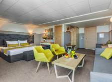Всього в готелі 150 номерів: Standard Room Land View (18 кв.м, вид на навколишні ландшафти, макс. 3) Standard Room Sea View (18 кв.м, виднаморе, макс. 3) Executive Room Land View (20 кв.м, виднанавколишніландшафти, макс. 3) номери відремонтовані в блакитних, сірих або коричневих тонах Executive Room Sea View (20 кв.м, вид на море, макс. 3) номери відремонтовані у блакитних, сірих чи коричневих тонах Executive Family Room Land View (45 кв.м 2+2) спальня з двоспальним ліжком, двоярусне ліжко або диван-ліжко для дітей, вид на місцевість Executive Family Room Sea View (45 кв.м 2+2) спальня з двоспальним ліжком, двоярусне ліжко або диван ліжко для дітей, вид на море Superior Room Land View (25 кв.м, вид на навколишні ландшафти, макс. 3) Superior Room Sea View (25 кв.м, виднаморе, макс. 3) Superior Room Bunkbed Land View (25 кв.м, виднанавколишніландшафти 2+2) спальнявідкритогоплануваннязоднимдвоспальнимліжкомтадодатковедвояруснеліжко Superior Room Bunkbed Sea View (25 кв.м, виднаморе, 2+2) спальнявідкритогоплануваннязоднимдвоспальнимліжкомтадодатковедвояруснеліжко Junior Suite Sea View (45 кв.м, виднаморе 3+1): абономервідкритогоплануваннязоднимдвоспальнимліжкомтадиванліжком, абоокремаспальняздвоспальнимліжкомтавітальняздиван-ліжком У номерах: Wi-Fi інтернет (безкоштовно). Супутникові канали. Міні холодильник. Телефон. Балкон або тераса. Індивідуальний кондиціонер. Ванна кімната з душем або ванною. Банні приналежності.