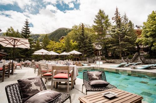 В основному ресторані готелю пропонуються традиційні страви французької кухні, приготовлені з добірних місцевих продуктів. Затишний, обшитий деревом, ресторан La Luge представляє альпійські делікатеси, страви, приготовані на грилі, і вишукування савойської кухні. У барі запропонований широкий асортимент різних напоїв.