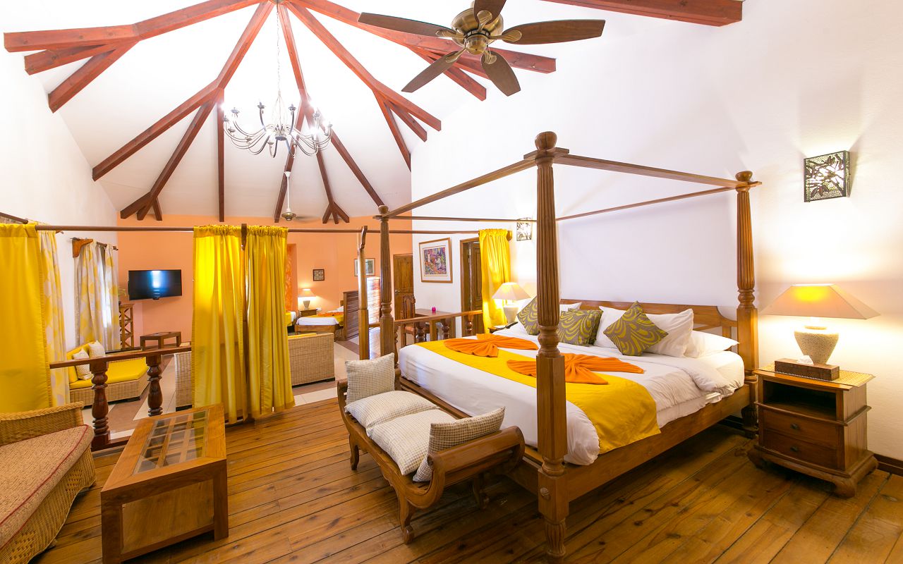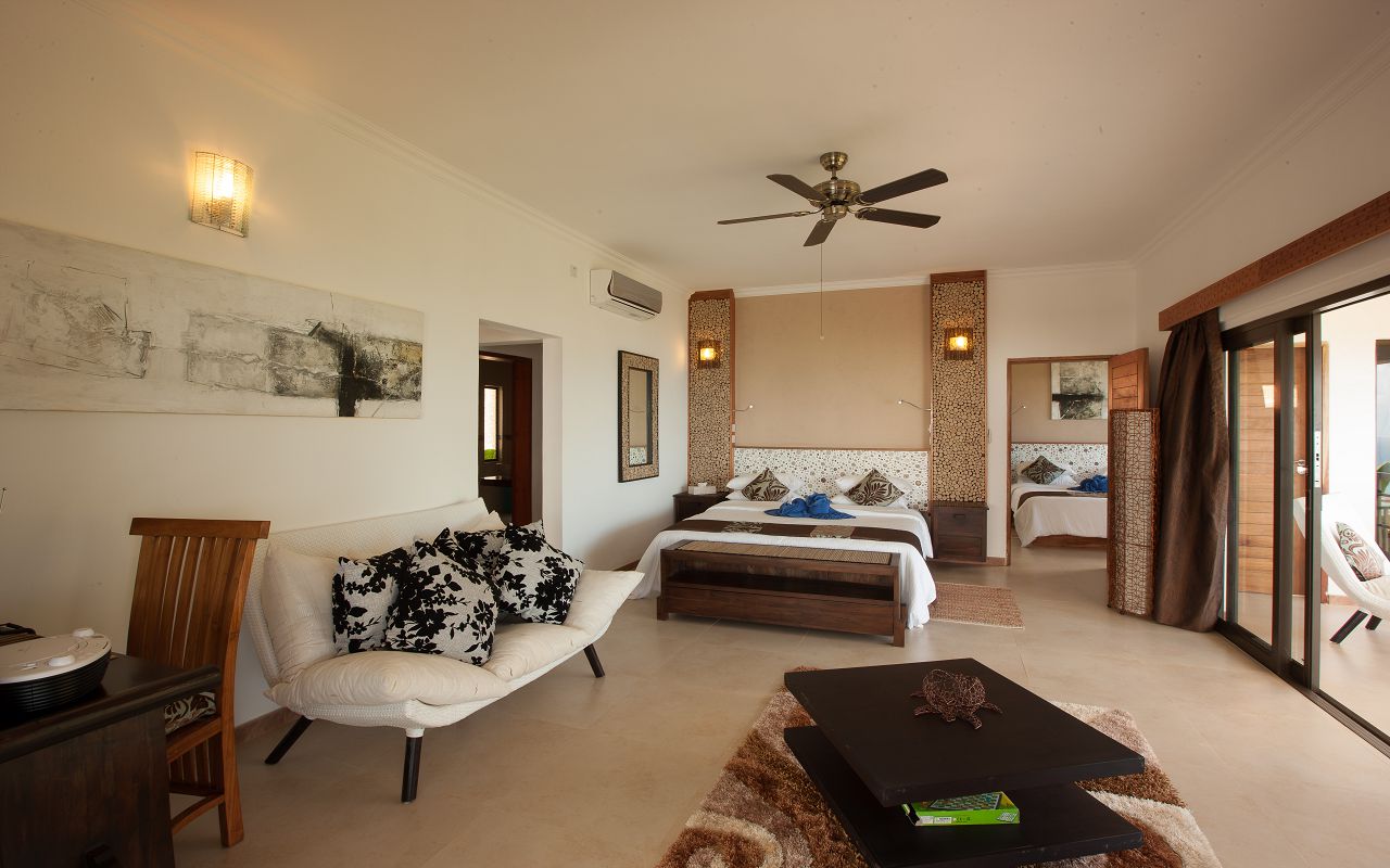У готелі 35 номерів: 6 Standard Room (65 м ², макс. 3 чол.). Спальня з ліжком king-size, ванна кімната з душем, тераса із зоною відпочинку. 20 Superior Room (65 м ², макс. 3 чол.). Спальня з ліжком king-size, ванна кімната з ванною та душем, тераса із зоною відпочинку. 6 номерів цієї категорії можуть бути поєднані (interconnecting). 4 Honeymoon Suite (75 м ², макс. 2 чол.). Номери спеціально призначені для молодят. Спальня з ліжком king-size, ванна кімната з ванною та душем, душ на відкритому повітрі у приватному міні-садку, тераса із зоною відпочинку. 2 Family Suite One-Bedroom (100 м², макс. 4 або 2+2 особи). Просторі номери, які ідеально підходять для розміщення сімей з дітьми. Спальня з ліжком king-size, 2 односпальні ліжка, зона вітальні, мікрохвильова піч, ванна кімната з ванною та душем, тераса з обіднім столом та зоною відпочинку. 1 Family Suite Two-Bedroom (135 м², макс. 6 або 4+2 чол.). Дві спальні (одна з ліжком king-size, інша з двома односпальними ліжками twin), зона вітальні, 2 ТБ з плоским екраном (по одному в кожній спальні), мікрохвильова піч, холодильник. Ванна кімната з ванною та душем, 2 окремі туалети. Тераса з видом на басейн. 1 Three-Bedroom Hillside Mason (140 м ², макс. 6 чол.). Три спальні (одна з ліжком king-size, інші – з ліжками twin), повністю обладнана кухня, їдальня, зона вітальні на верхній терасі, нижня тераса з диваном та шезлонгами. 1 Four-Bedroom Hillside Villa (260 м², макс. 12 або 8+4 чол.). Двоповерхова вілла з чотирма спальнями (2 на першому поверсі, 2 – на другому), дві повністю обладнані кухні, тераса з обідньою зоною та видом на океан, «безкрайній» басейн, невеликий басейн для дітей. Вілла може бути заброньована як повністю, так і наполовину (верхній або нижній поверх). Вілли Three-Bedroom Hillside Mason та Four-Bedroom Hillside Villa розташовані на височині з прекрасним видом на пляж Cote D’Or, за кілька хвилин їзди від готелю. Гостям безкоштовно надається автомобіль для пересування. Сніданок може бути організований у віллі або ресторані готелю (на вибір); вечеря (для гостей на НВ) – у ресторані готелю або у віллі (необхідно бронювати послуги шеф-кухаря/за запитом/ максимум 6 осіб на НВ). У номерах набір для приготування чаю/кави, тераса, iPod (док-станція з CD-плеєром), обладнана кухня (Three-bedroom Hillside Mason та Four-bedroom Hillside Villa), мікрохвильова піч (Family Suite One-bedroom та Family Suite Two-bedroom), телефон, ванна та душ (в Standard Room – тільки душ), ліжко king-size в однокімнатних номерах (ліжка twin – лише у дво-, три- та чотириспальних віллах).