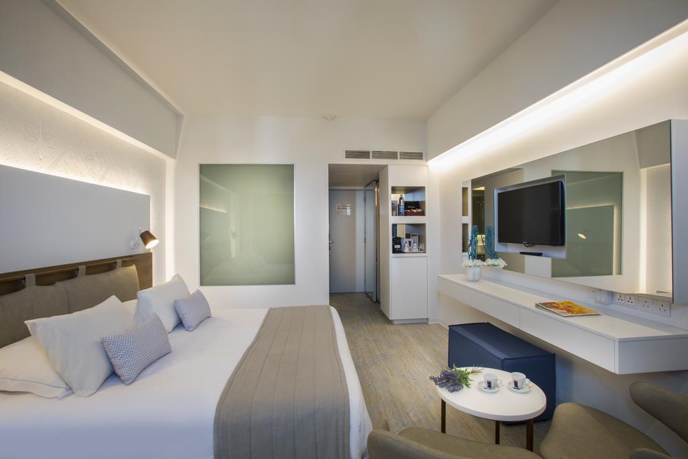 Premium Superior Side Sea View Room Площа: 23 кв. Вміщує: до 3 осіб Ліжка: два односпальні або двоспальні ліжка Сучасний дизайн, кожен із своєю індивідуальністю; Пропонуючи першокласний комфорт і визначний вид на Середземне море. У цьому покращеному номері «Преміум» є ванна кімната з ванною і туалетом, багатий вибір розкішного туалетно-косметичного приладдя, еспресо-машина, туалетний столик, система кондиціювання повітря/опалення, прямий міжнародний телефонний зв'язок, сейф, безкоштовний бездротовий доступ до Інтернету, розкладний диван. балкон, міні-бар (заповнюється за запитом), РК-телевізор з радіоканалами, халати та капці, приладдя для чаю/кави та фен.