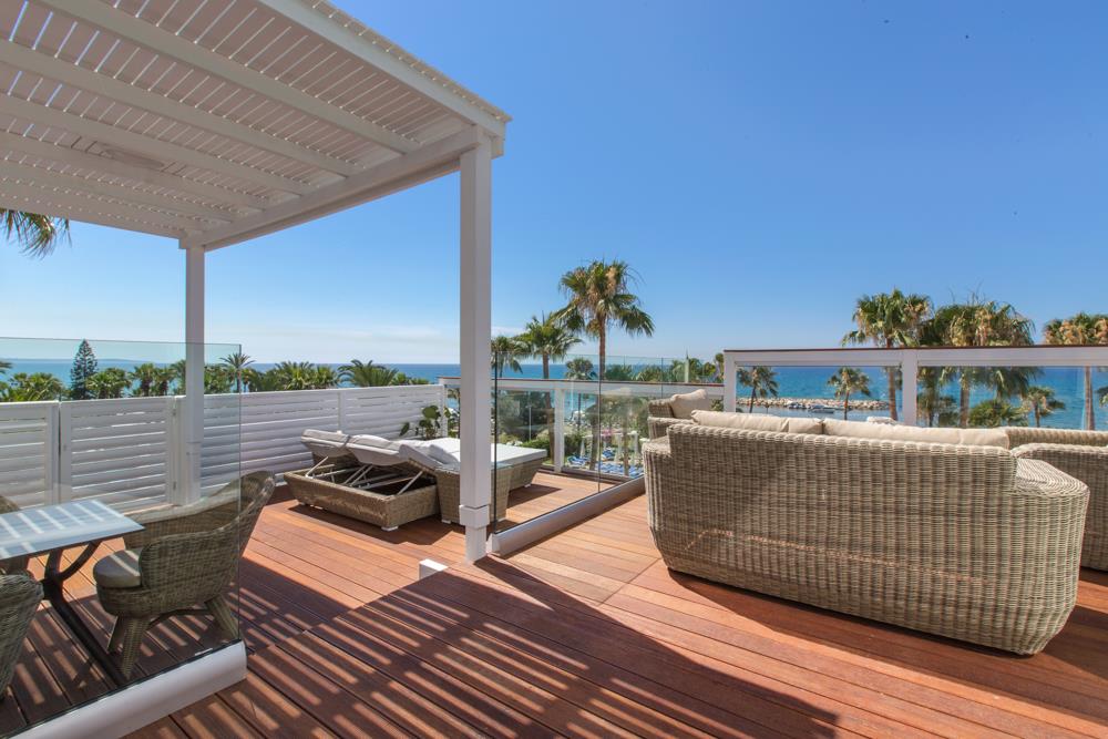 Panoramic Suite Площа: 27 кв. Вміщує: максимум 2 особи Ліжка: Двоспальне ліжко Цей приватний люкс з великою терасою та джакузі ідеально підходить для тих, хто хоче насолодитися красою Середземномор'я. Цей панорамний люкс пропонує ванну кімнату з ванною і туалетом, багатий вибір туалетного приладдя, еспресо-машину, туалетний столик, кондиціонер / систему опалення, прямий міжнародний телефонний зв'язок, сейф, безкоштовний бездротовий доступ в Інтернет, диван-ліжко (за запитом), повну довжину. дзеркало, окремий балкон із загальним джакузі, міні-бар (заповнюється за запитом), РК-телевізор з радіоканалами, приладдя для чаю/кави, халати та капці, фен.