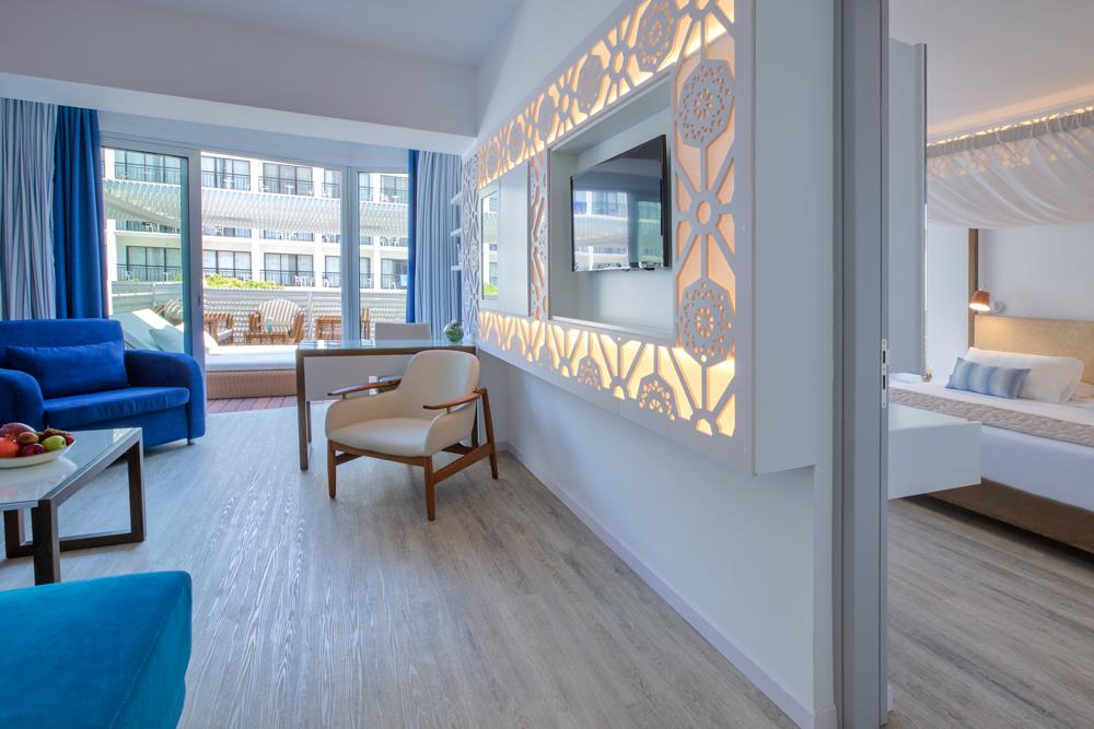Family Suite Площа: 46 кв. Вміщує: 2+3 дитини макс. Ліжка: двоспальне ліжко та два односпальні ліжка Поряд із грайливим та сучасним дизайном, натхненним нашою традиційною середземноморською спадщиною, з двома спальнями та однією ванною кімнатою. люкси ідеальний вибір для сімейного відпочинку. Цей сімейний люкс пропонує дві спальні з суміжними дверима, ванну кімнату з ванною і туалетом, багатий вибір туалетного приладдя, еспресо-машину, туалетний столик, кондиціонер / систему опалення, прямий міжнародний телефонний зв'язок, сейф, безкоштовний бездротовий доступ в Інтернет, диван-ліжко (за запитом міні-бар (заповнюється за запитом), РК-телевізор з радіоканалами, приладдя для чаю/кави, халати та капці, фен.