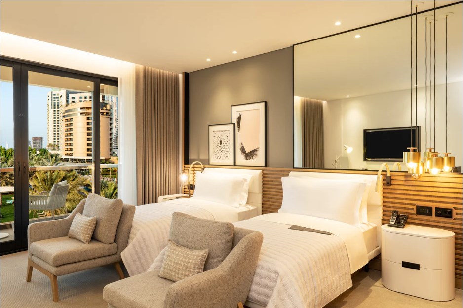 3 відкриті басейни (з прісною водою з режимом температурного контролю) спа-центр 4 конференц-зали бізнес-центр автобус до центру міста (до Mall of the Emirates за розкладом, безкоштовний трансфер і користування інфраструктурою готелю Grosvenor House) магазин Wi-Fi парковка Інтернет-кафе пральня перукарня дитячий клуб (4-12) дитячий майданчик