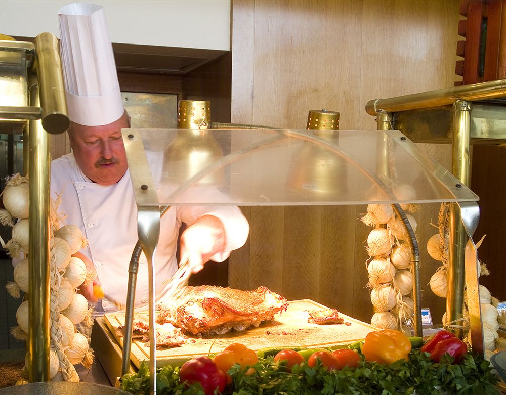 - столовая на 300 мест предлагает богатый выбор блюд национальной и международной кухни; - столовая на 100 мест предлагает блюда национальной и международной кухни; - бар в холле отеля на 120 мест предлагает чай, кофе, десерты, разнообразные напитки и коктейли; - закусочный бар предлагает большой выбор прохладительных напитков,коктейлей, закусок, лёгких блюд.