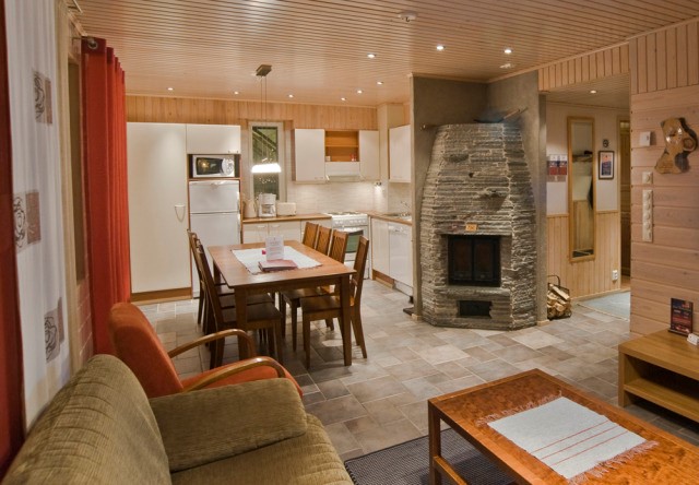 У котеджі:апартамент розташований на одному рівні (перший поверх котеджу) 67m2;максимальне розміщення 6 дор. (3 спальні);Вітальня з відкритою кухнею, камін, електрична сауна, ванна кімната, окремий туалет та передпокій .Обладнання: посуд та кухонне обладнання, плита, духовка, посудомийна машина, холодильник з морозильною камерою, мікрохвильова піч, чайник, кавоварка, тостер, CD-плеєр, DVD, телевізор, сушильна шафа, прасувальне обладнання, фен, дрова, кондиціонер.