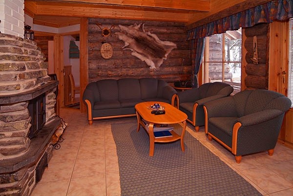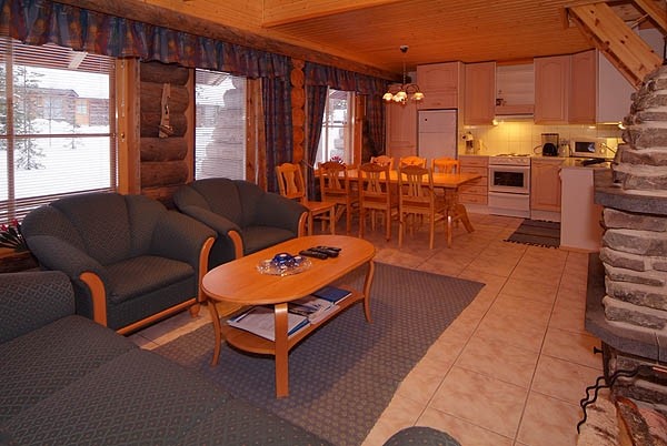 На першому поверсі: вітальня з відкритою кухнею, 3 спальні (з яких одна з двоспальним ліжком та 2 з 4 окремими ліжками), камін, електрична сауна, ванна кімната, туалет, передпокій, тераса.