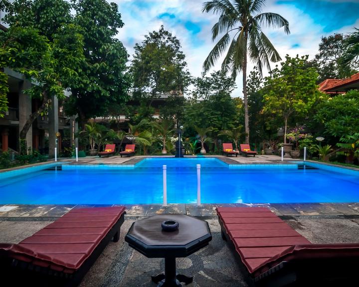 Курортний готель Melasti Beach Bungalow розташований у тропічному саду на пляжі Кута-біч. До послуг гостей 2 відкритих басейни, спа-салон, різні косметичні процедури для обличчя та тіла, безкоштовна автостоянка та Wi-Fi. Готель Melasti Beach Bungalow розташований на пляжі Kuta Beach, за 100 м від центру Кути, поблизу аквапарку Waterbom, ресторанів, барів, туристичних визначних пам'яток, в 200 м від великого торгового центру Discovery Shopping Mall. До міжнародного аеропорту Нгурах-Рай 2,24 км (5-10 хвилин їзди). Аеропорт: Міжнародний аеропорт Нгурах-Рай – 2.24 км.