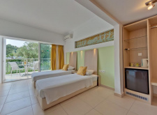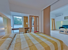 JUNIOR SUITE (45 кв.м) спальня відкритого планування з одним двоспальним ліжком та двома односпальними ліжками.
