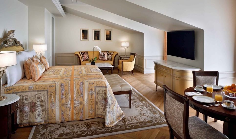 Superior Versace Room Creek View - затишні та просторі, з приголомшливим видом на затоку Дубай, ці люкси мають власну індивідуальність та вишуканість у великому масштабі. Гості оцінять унікальний дизайн вітальні та робочої зони площею 110 кв. м. Спальня включає ліжко розміру "супер-кінг-сайз" з постільною білизною від Versace та унікально оформлену гардеробну зону з гардеробною шафою та туалетним столиком у голлівудському стилі - мрія кожної модниці, що втілилася в життя. Унікально спроектовані меблі від Версаче