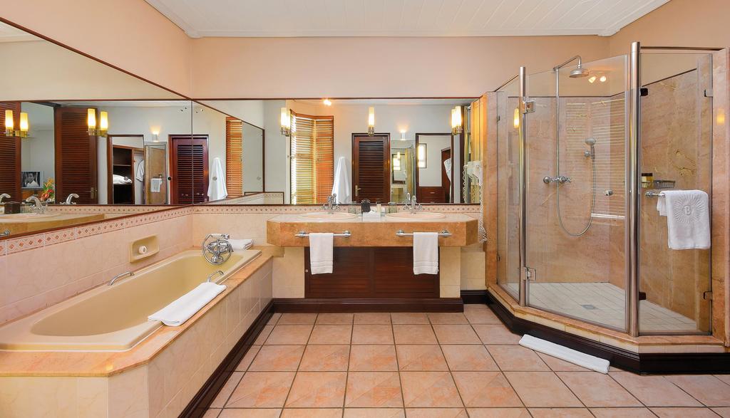 Номера и люксы оформлены в натуральных тонах. В распоряжении гостей собственная ванная комната, телевизор с плоским экраном и бесплатный Wi-Fi. Во всех номерах имеется собственный меблированный балкон с видом на Индийский океан. Некоторые номера находятся прямо на пляже.