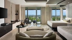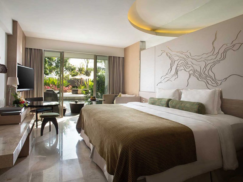 Готель складається з 3-4 поверхових корпусів. Всього 282 номери, є номери connect на 1 поверсі: 147 Rimba Hillside room; 73 Rimba Jimbaran Bay room; 19 Rimba Premium view room; 11 Rimba Pool Access room; 10 Rimba Jimbaran Bay Suite; 22 Rimba Premium View Suite (70 м2, вид на територію та океан, зони вітальні та спальні). У номерах балкон або тераса, телебачення з супутниковими каналами, безкоштовний Wi-Fi, кондиціонер, телефон, сейф, ванна кімната з ванною та душем, феном та туалетним приладдям, халати та капці, праска та прасувальна дошка, міні-бар з холодильником, чайник та приладдя длячаю та кави, Ipod станція, кавоварка (Suite).