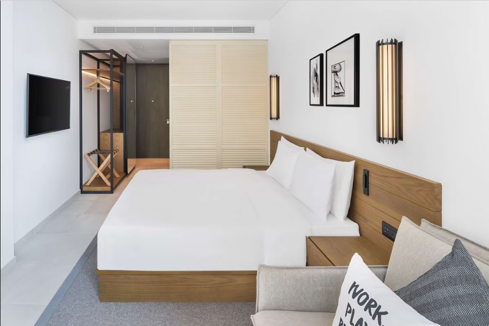 Premium Room- 33 m², з повним видом на море. Висипайтеся на зручних односпальних ліжках або плюшевому двоспальному ліжку розміру "king-size". Насолоджуйтеся навколишніми краєвидами з балкона або розслабтеся, перекусивши з міні-бару перед великим телевізором з плоским екраном. Заряджайте свої пристрої за допомогою декількох USB-роз'ємів та залишайтеся на зв'язку завдяки безкоштовному Wi-Fi. Corner Premium Room- 36 m², насолоджуйтесь усіма чудовими зручностями наших номерів преміум-класу та додатковим простором для вашого комфорту. Сучасні, світлі та розслаблюючі - ці номери мають балкон з видом на море та плюшеве ліжко розміру "king-size". Розслабтеся з напоєм або закускою з міні-бару, подивіться улюблені передачі по телевізору з плоским екраном і тримайте свій телефон або планшет зарядженим за допомогою декількох USB-портів. One Bedroom Suite- 60 m², люкс з однією спальнею та видом на місто. Ці просторі та світлі люкси мають окрему вітальню та спальню з розкладним диваном, зручним двоспальним ліжком розміру "king-size" і сучасною ванною кімнатою. Розслабтеся перед великим телевізором з плоским екраном і залишайтеся на зв'язку завдяки безкоштовному Wi-Fi та декільком портам для зарядки. Також є номери з видом на море. Основні зручності номерів: