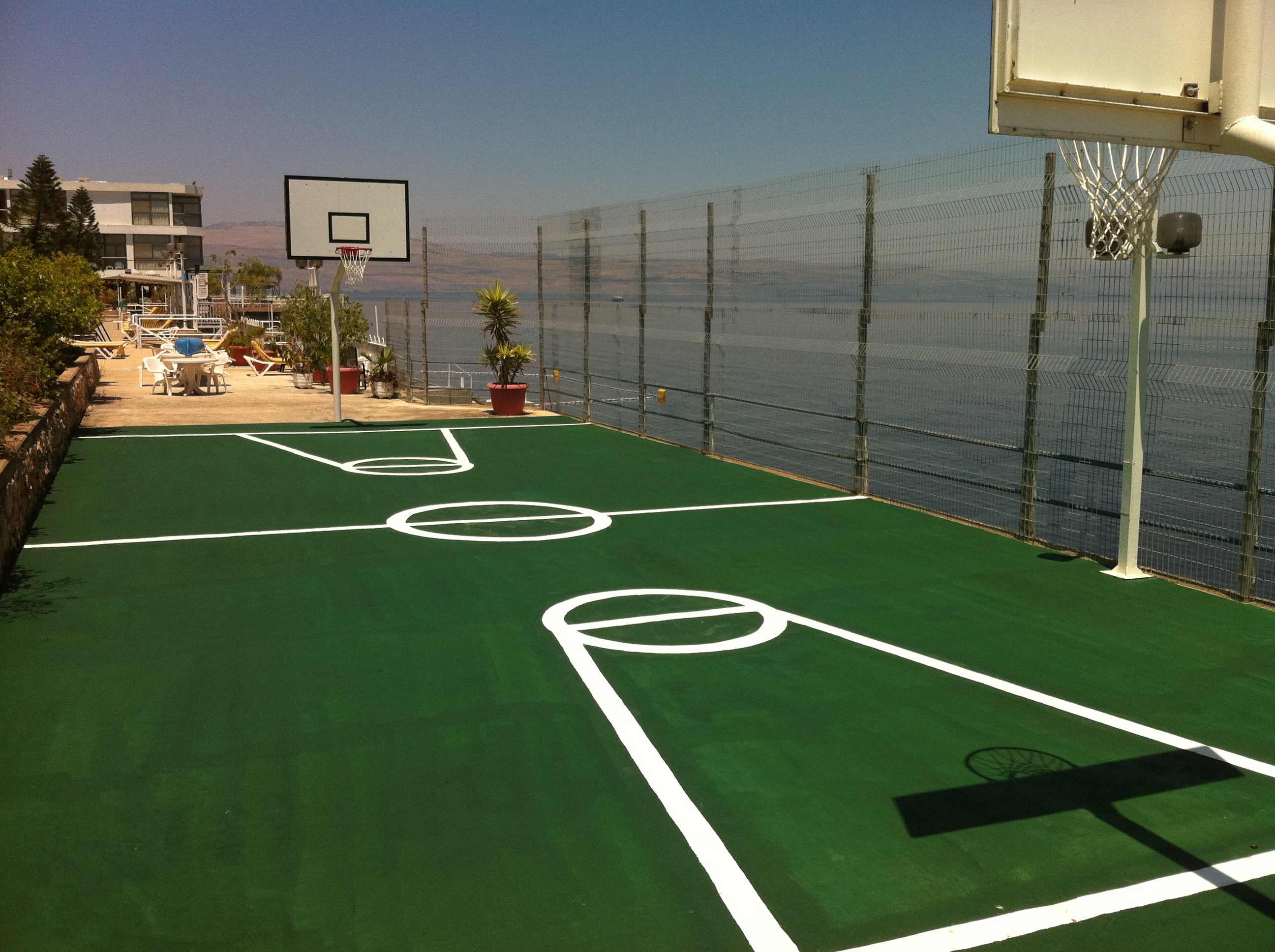- открытый бассейн; - баскетбольная площадка; - тренажерный зал.