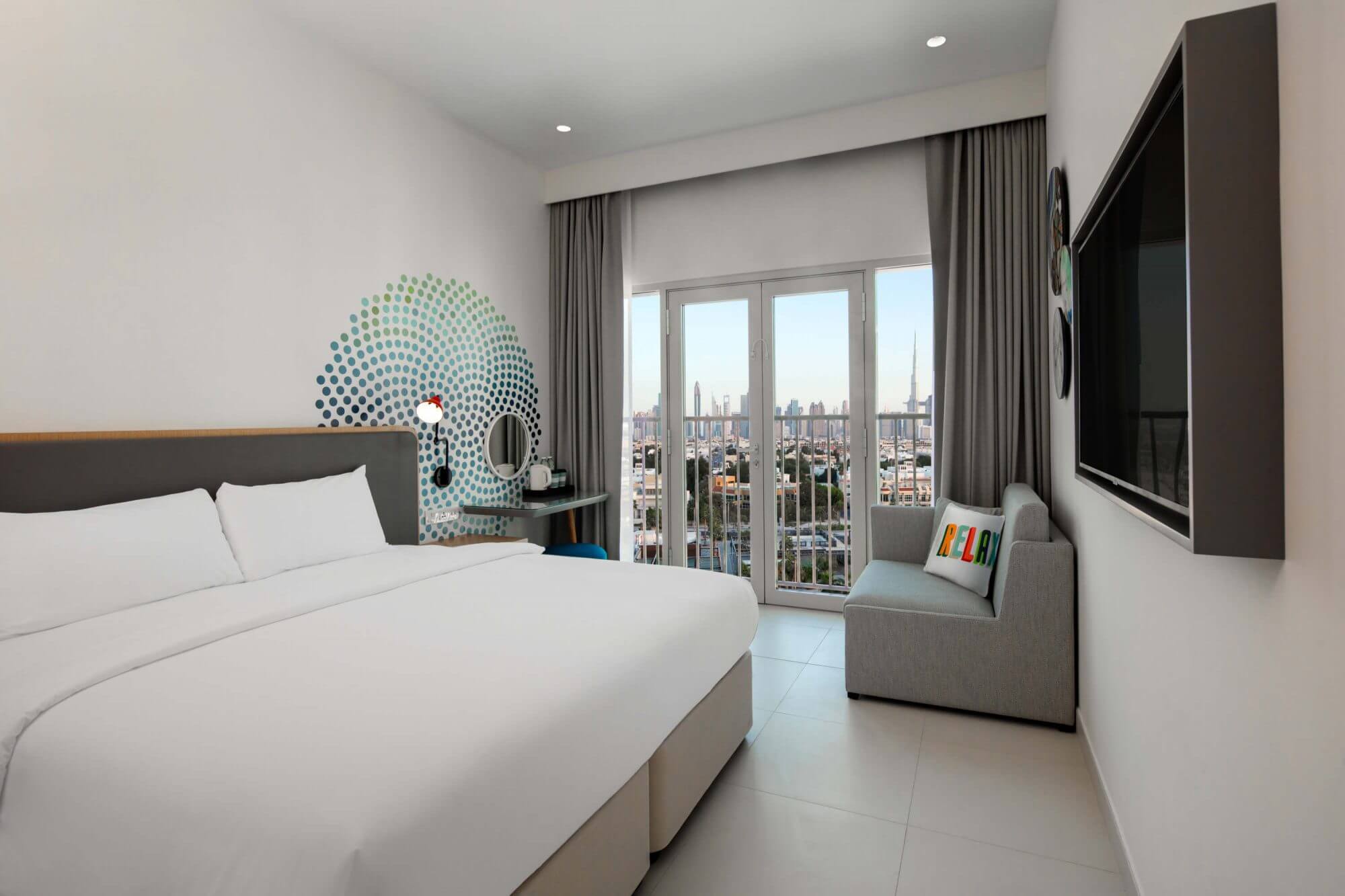 Насолоджуйтеся сонцем, піском та жвавою атмосферою на еклектичному узбережжі Дубаю в Джумейрі. Отримавши свою порцію вітамінів моря, попрощайтеся з пляжем і вирушайте до жвавого району Джумейра, наповненого стильними кав'ярнями, модними ресторанами та культурними пам'ятками, такими як музей Емірату. У районі Ла Мер, що знаходиться за декілька хвилин від готелю, ви також зможете насолодитися безліччю ресторанів, аквапарком і новим вуличним мистецтвом. Ви навіть знайдете найвідоміші місця Дубая неподалік - тож тримайте фотоапарат під рукою, досліджуючи Дубай Молл і Бурдж Халіфа, які знаходяться в межах легкої досяжності. Відображаючи звивисті провулки району Rove La Mer, готельні інтер'єри надихають місцевим мистецтвом і додають трохи прохолодних пляжних вібрацій.