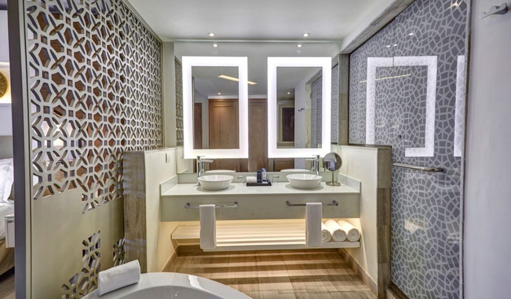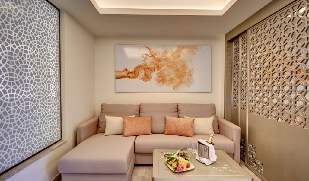 Luxury Junior Suite Swim Out DC (56 м2, макс. 4+0 чол.) номери з 1 ліжком розміру king-size або 2 ліжками queen-size та привілеї Diamond Club (ознайомитись можна у розділі додаткової інформації), з виходом до басейну. У номерах міні-бар, сейф: є, душ, прасувальна дошка: є, стельовий вентилятор, телевізор: є, раска: є, фен: є, Інтернет: Wi-Fi, безкоштовно, кондиціонер: є, балкон або тераса, room service: цілодобово, чайник чи кавомашина.