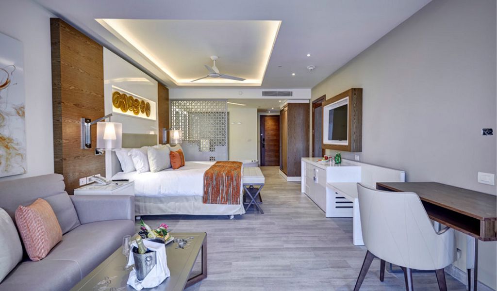 Luxury Junior Suite Ocean View DC (56 м2, макс. 4+0 чол.) номери з 1 ліжком розміру king-size або 2 ліжками queen-size та привілеї Diamond Club (ознайомитись можна у розділі додаткової інформації), з видом на океан;