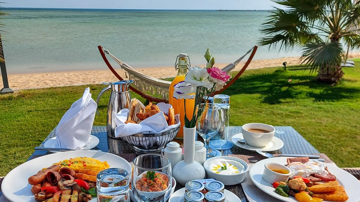 З панорамним видом на затоку Сімайсма, пляж і стадіон Аль-Байт, Awtar це ресторан, який працює цілий день у вишуканій обстановці та пропонує вишукані страви з усього світу. Ресторан використовує свіжі місцеві інгредієнти, щоб усі фірмові страви дарували вам незабутнє кулінарне задоволення. Гості можуть пообідати в ресторані у фойє або на відкритій терасі. Проведіть спокійний день, насолоджуючись свіжими тропічними безалкогольними коктейлями та легкими стравами. Ресторан Infinity, розташований біля пляжу та басейну, з чудовим видом, пропонує авторські напої, смачні закуски, салати та багато іншого. Mokha Lounge- насолоджуйтесь свіжою кавою, чаєм або випічкою в затишній атмосфері. Вдень ви можете скуштувати свіжозварену каву або фірмовий чай разом із вишуканими пирогами та випічкою. Ввечері затишна атмосфера продовжується завдяки безалкогольним коктейлям та закускам.