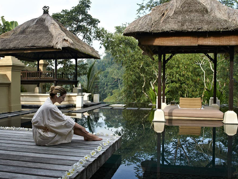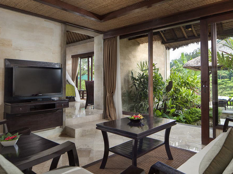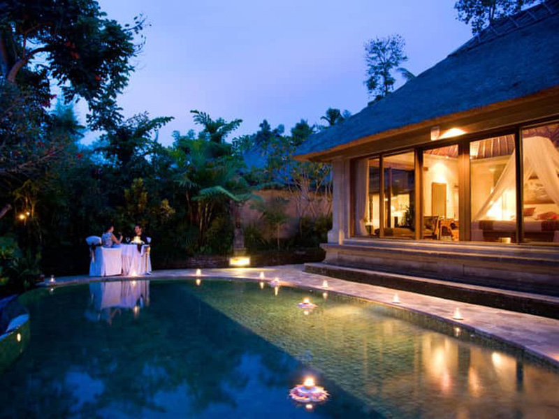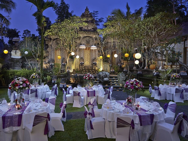 У ресторані Ayung Valley подають страви регіональної та міжнародної кухні. У лаундж-барі Dewata гостям запропонують легкі закуски та освіжаючі напої. Dewata Lounge (сучасна європейська та азіатська кухня, відкрито з 07.00 до 23.00), Ayung valley (інтернаціональна кухня, відкритий з 07.00 до 23.00), Teras Bali (балійська кухня, відкрито з 07.00 до 23.00),Ayung Organic ("органічні" страви, "здорові" ланчі та сніданки, відкритий з 07.00 до 22.00, післяобідній чай/кава з тістечками в Dewata Lounge), Dewata Lounge (відкрито з 10.00 до 00.00, цілодобове замовлення страв та напоїв у номер). Вечеря з балійськими танцювальними виставами (раз на тиждень)