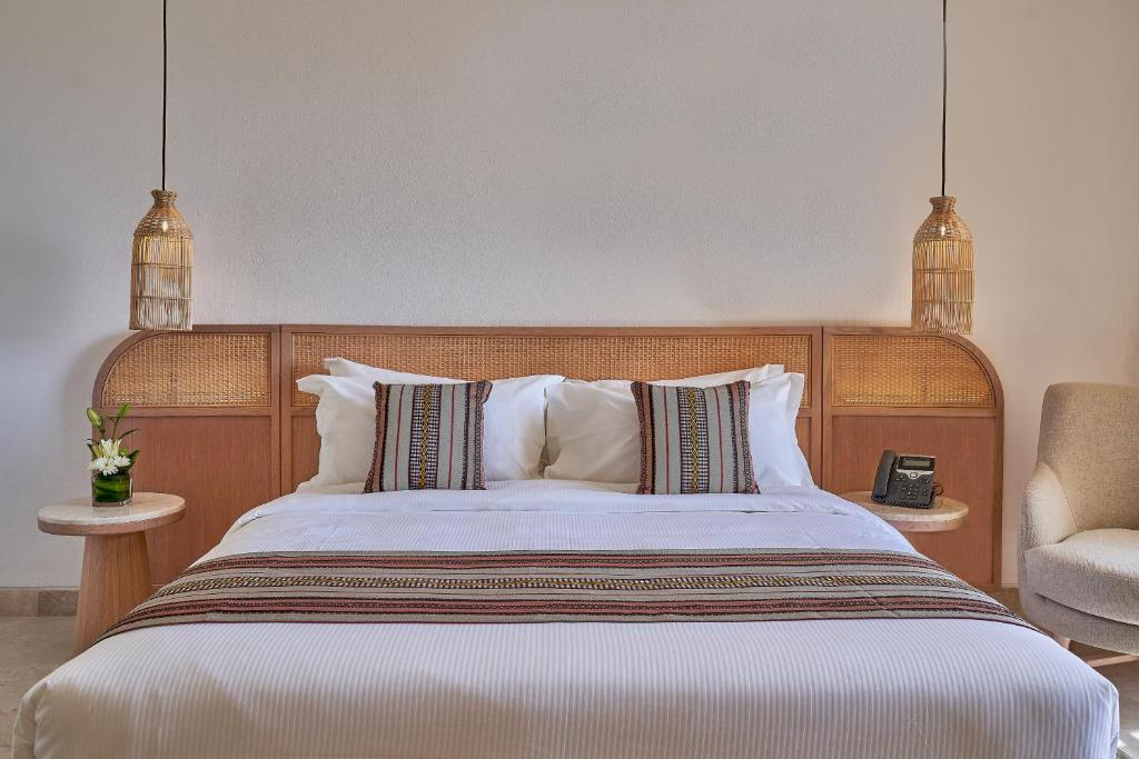 Classic Room - 47 кв.м. Ці номери мають сучасний, світлий інтер'єр і додаткові 14 кв.м. на приватній терасі. Ці просторі двомісні номери мають вибір видів: на блискучі блакитні води ексклюзивного басейну, на красиві ландшафтні сади або частковий вид на океан, і все це в декількох кроках від пляжу. У номері є спеціальне робоче місце, зона відпочинку та простора ванна кімната з душовою кабіною з водоспадом. Дизайн інтер'єру відображає найкраще з сучасності з оманськими мотивами, поєднуючи старе і нове для створення унікального середовища. Приватний пляж знаходиться всього в декількох метрах, а також усі зручності та послуги курорту Hawana Salalah. Executive Room - 47 кв. м. Ці просторі двомісні номери з внутрішньою площею та додатковою 14 кв. м на приватній терасі мають зачаровуючий панорамний вид на пляж і океан. Такий вид не має аналогів на всьому курорті. Елегантний спокійний інтер'єр доповнений місцевими творами мистецтва ручної роботи, що створюють унікальну атмосферу Оману. Спеціальна робоча зона та зручна зона відпочинку з диваном плавно переходять у спокійну зону з великим двоспальним ліжком та розкішною сучасною ванною кімнатою. З приватним пляжем, великим басейном, ландшафтними садами та всіма зручностями Hawana Salalah поруч, ці номери на березі моря мають все необхідне для ідеального відпочинку.