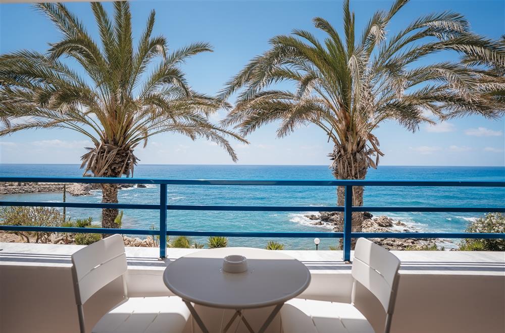 Deluxe One-Bedroom Apartment Sea View розташовані на першому поверсі у західній частині готелю та можуть вмістити до 4 дорослих. Ці апартаменти мають повний вид на Середземне море, вітальню/їдальню, спальню з одним двоспальним або двома односпальними ліжками, ванну кімнату з душовою кабіною, міні-кухню та диван-ліжко, яке розкладається на двоспальне ліжко. Deluxe Studio with Sea View розташовані на першому поверсі у західній частині готелю та можуть вмістити до трьох дорослих. З них відкривається панорамний вид на Середземне море. Вони являють собою номери відкритого планування з повністю обладнаною міні-кухнею, одним двоспальним або двома односпальними ліжками, диваном-ліжком, обідньою зоною та окремою ванною кімнатою з душовою кабіною. Standard Studio with Garden View Ці стандартні студії розташовані на першому поверсі зі східної сторони готелю та можуть вмістити до трьох дорослих. Це номери відкритого планування з видом на сад, повністю обладнаною міні-кухнею, двоспальним або двома односпальними ліжками, диваном-ліжком, обідньою зоною та окремою ванною кімнатою з ванною. Standard Studio with Sea View розташовані на другому поверсі із західної сторони готелю та можуть вмістити до трьох дорослих. З них відкривається панорамний вид на Середземне море. Це номери відкритого планування з повністю обладнаною міні-кухнею, двоспальним або двома односпальними ліжками, диваном-ліжком, обідньою зоною та окремою ванною кімнатою з ванною. Standard One-Bedroom Apartments with Garden View розташовані на першому поверсі у східній частині готелю та можуть вмістити до 4 дорослих. Ці номери мають окрему вітальню/їдальню, окрему спальню з двоспальним або двома односпальними ліжками, окрему ванну кімнату з ванною, міні-кухню та два дивани-ліжка, а також виходять вікнами на сад. Standard One-Bedroom Apartment with Sea View розташовані на першому та другому поверсі у західній частині готелю та можуть вмістити до 4 дорослих. Вони мають повний вид на Середземне море та мають окрему вітальню/їдальню, окрему спальню з двоспальним або двома односпальними ліжками, окрему ванну кімнату з ванною, міні-кухню та два дивани-ліжка. Superior Studio with Sea View розташовані на першому поверсі у західній частині готелю та можуть вмістити до трьох дорослих. З них відкривається панорамний вид на Середземне море. Вони являють собою номери відкритого планування з повністю обладнаною міні-кухнею, двоспальним або двома односпальними ліжками, диваном-ліжком, обідньою зоною та окремою ванною кімнатою з ванною. Superior One-Bedroom Apartment with Sea View розташовані на першому та другому поверхах у західній або східній частині готелю та можуть вмістити до чотирьох дорослих. З них відкривається панорамний вид на Середземне море, окрема вітальня/їдальня, окрема спальня з двоспальним або двома односпальними ліжками, окрема ванна кімната з ванною, міні-кухня та два дивани-ліжка. Superior Two-Bedroom with Sea View розташовані на першому та другому поверхах із західної або східної сторони готелю та можуть вмістити до шести дорослих. З них відкривається панорамний вид на Середземне море, окрема вітальня/їдальня, дві окремі спальні з двоспальним та двома односпальними ліжками, окрема ванна кімната з ванною, міні-кухня та два дивани-ліжка. Junior Suite with Sea View розташовані на третьому поверсі в передній частині готелю та можуть вмістити до трьох дорослих. Ці люкси призначені лише для дорослих. З них відкривається пан