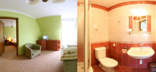 Апартаменты идеально подходят для отдыха семей с детьми. Они имеют две отдельные комнаты, в одной есть двуспальная кровать, в другой две отдельные кровати. Также имеются уютные номера на 2 и 3 лица, оснащенные стандартными телевизорами, столами, стульями, большинство с балкономи с видом на Татры. В каждом номере есть ванная комната.