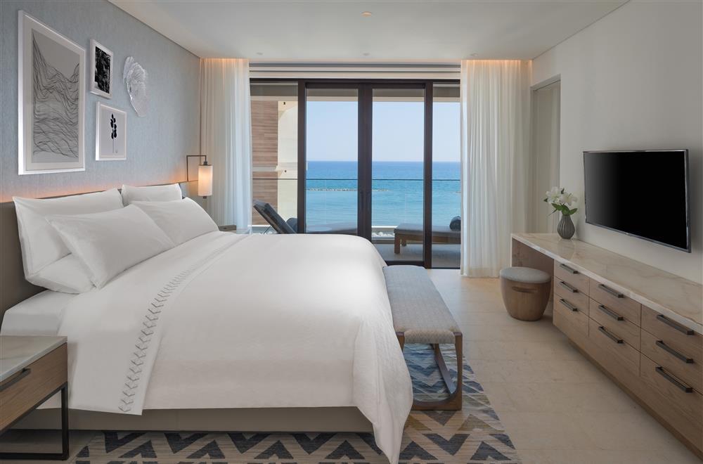 Deluxe Bedroom Sea View – 45 кв.м. (макс. 2+1): номер з ліжком розміру "queen-size" або "king-size", мармурова ванна кімната з подвійною раковиною, велика ванна та окремий душ