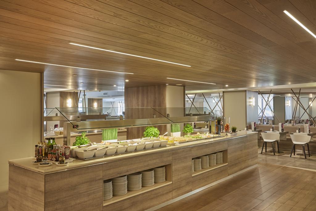 В якості послуг харчування готель пропонує все включено, напівпансіон або тільки сніданок. Сніданок та вечеря пропонується за системою "шведський стіл". Для харчування в ресторані з терасою і буфетом працює кафетерій.