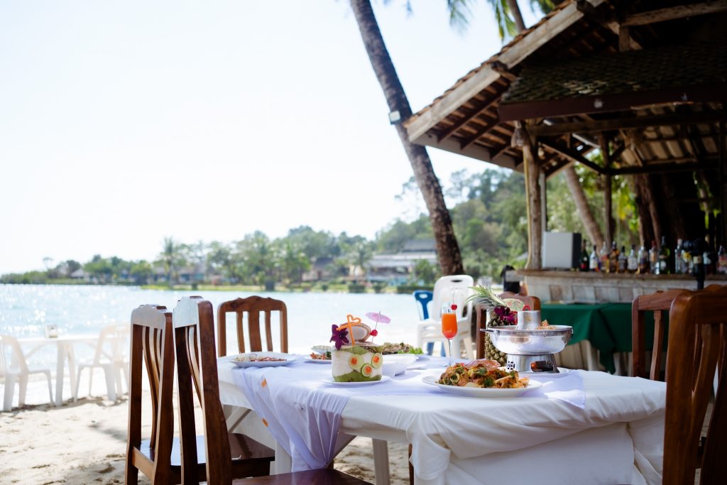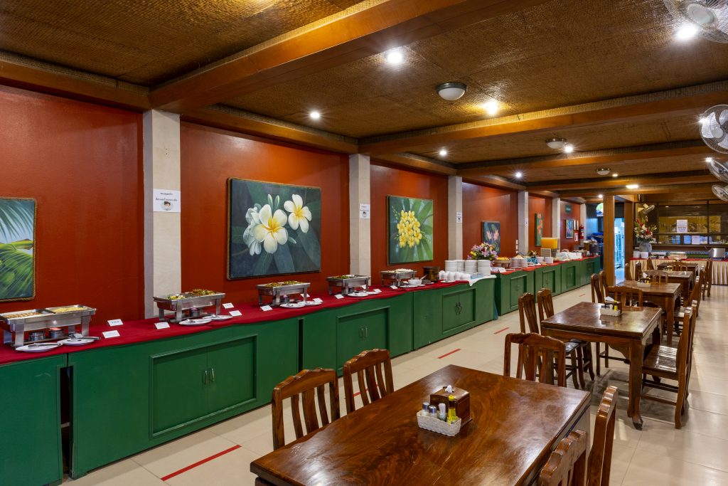 RESTAURANT на сніданок, обід і вечерю готує страви тайської та міжнародної кухні і пропонує 250 гостей, працює з 10 ранку до 9 вечора.