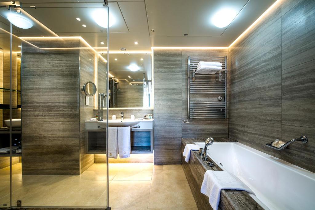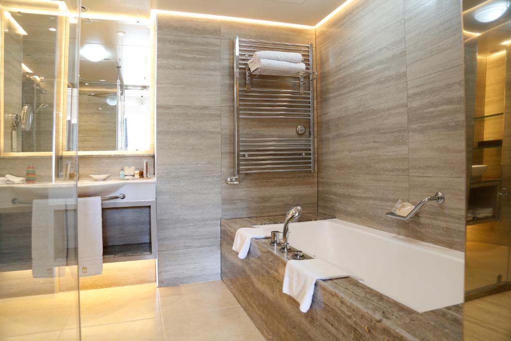 ЗРУЧНОСТІ В НОМЕРАХ Кондиціонер та опалення Халати та капці Щоденна безкоштовна мінеральна вода Телефон Телевізор Холодильник Фен Розкішні туалетно-косметичні засоби Міні-бар (за додаткову плату) Кавомашина Nespresso Сейф (безкоштовно) Приладдя для приготування чаю та кави Wi-Fi (безкоштовно)