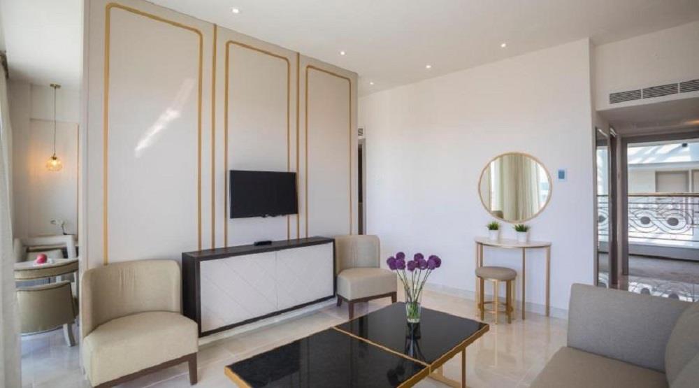 Land View Rooms З номерів Land View відкривається вид на сад або вулицю. До послуг гостей ліжко розміру "king-size" або 2 односпальні ліжка, кондиціонер/опалення, РК-телевізор, супутникове телебачення, Wi-Fi, фен, розетка для бритви 220/240 вольт, міжнародна розетка, прямий міжнародний телефон. , цифровий сейф, міні-холодильник/міні-бар, усе необхідне для приготування чаю та кави, включаючи чайник, щоденне прибирання та мебльований балкон. Side Sea View Rooms Номери з боковим видом на море мають частковий вид на Середземне море, ліжко розміру "king-size" або 2 односпальні ліжка, кондиціонер/опалення, РК-телевізор, супутникове телебачення, Wi-Fi, фен, розетку для бритви 220/240 вольт, міжнародну електричну розетку, прямий міжнародний телефон. , цифровий сейф, міні-холодильник/міні-бар, усе необхідне для приготування чаю та кави, включаючи чайник, щоденне прибирання та мебльований балкон. Sea View Rooms Номери з видом на море мають вид на Середземне море, двоспальне ліжко розміру "king-size" або 2 односпальні ліжка, кондиціонер/опалення, РК-телевізор, супутникове телебачення, Wi-Fi, фен, розетка для бритви 220/240 вольт, міжнародна розетка, прямий міжнародний телефон, цифровий номер. сейф, міні-холодильник/міні-бар, усе необхідне для приготування чаю та кави, включаючи чайник, щоденне прибирання та мебльований балкон. Front Sea View Rooms Номери з прямим видом на море мають безперешкодний вид на Середземне море, ліжко розміру "king-size" або 2 односпальні ліжка, кондиціонер/опалення, РК-телевізор, супутникове телебачення, Wi-Fi, фен, розетку для бритви 220/240 вольт, міжнародну електричну розетку, прямий міжнародний телефон. , цифровий сейф, міні-холодильник/міні-бар, усе необхідне для приготування чаю та кави, включаючи чайник, щоденне прибирання та мебльований балкон. Family Suite Сімейний люкс має вид на Середземне море та зону вітальні, яка частково розділяє зону спальні. Вони оформлені в розкішному сучасному стилі та пропонують приватність і простір, а також комфорт і мають балкон. У них двоспальне ліжко, розкладний диван, простора ванна кімната з джакузі та душем. Серед зручностей: кондиціонер/опалення, РК-телевізор, супутникове телебачення, Wi-Fi, фен, розетка для бритви 220/240 вольт, міжнародна електрична розетка, прямий міжнародний телефон, цифровий сейф, міні-холодильник/міні-бар, усе необхідне для приготування чаю та кави. зручності, включаючи чайник, і щоденне прибирання. Queen Suite Люкс із двоспальним ліжком розміру "king-size", вітальнею, двома балконами, кондиціонером/опаленням, РК-телевізором, супутниковим телебаченням, Wi-Fi, феном, розеткою для бритви 220/240 вольт, міжнародною розеткою. прямий телефон, цифровий сейф, міні-холодильник/міні-бар, усе необхідне для приготування чаю та кави, включаючи чайник, щоденне прибирання та мебльований балкон. King Suite Люкс із двоспальним ліжком розміру "king-size" має безперешкодний вид на Середземне море та зону вітальні, яка частково розділяє зону спальні. У ньому є ліжко розміру "king-size", один балкон, кондиціонер/опалення, РК-телевізор, супутникове телебачення, Wi-Fi, фен, розетка для бритви 220/240 вольт, міжнародна розетка, прямий міжнародний телефон, цифровий сейф, міні-холодильник. /міні-бар, усе необхідне для приготування чаю та кави, включаючи чайник, щоденне прибирання та мебльований балкон. Presidential Suite Президентський люкс має безперешкодний вид на Середземне море та зону вітальні, яка частков