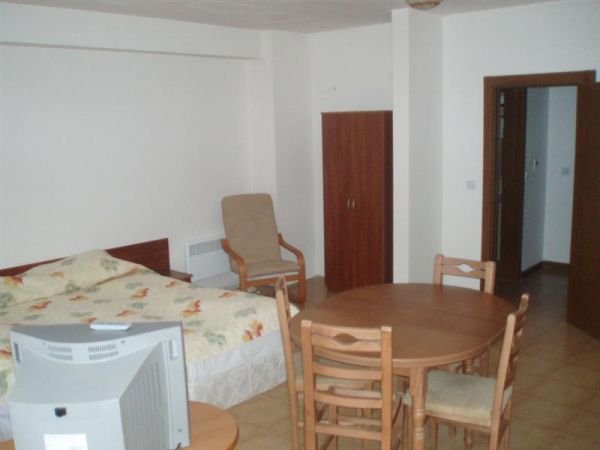 В СТУДИО: 1 номер с французкой кроватью, ТВ, телефон, холодильник, ванная комната и туалет, балкон. Некоторые с мини-кухней.