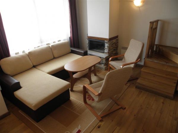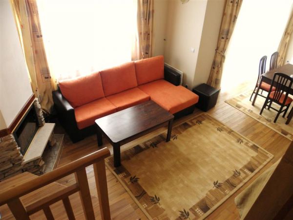 В МЕЗОНИНЕ: 3 спальни на втором этаже, гостинная с камином на первом этаже, кухонный уголок, большой раскладной диван, ванная комната.