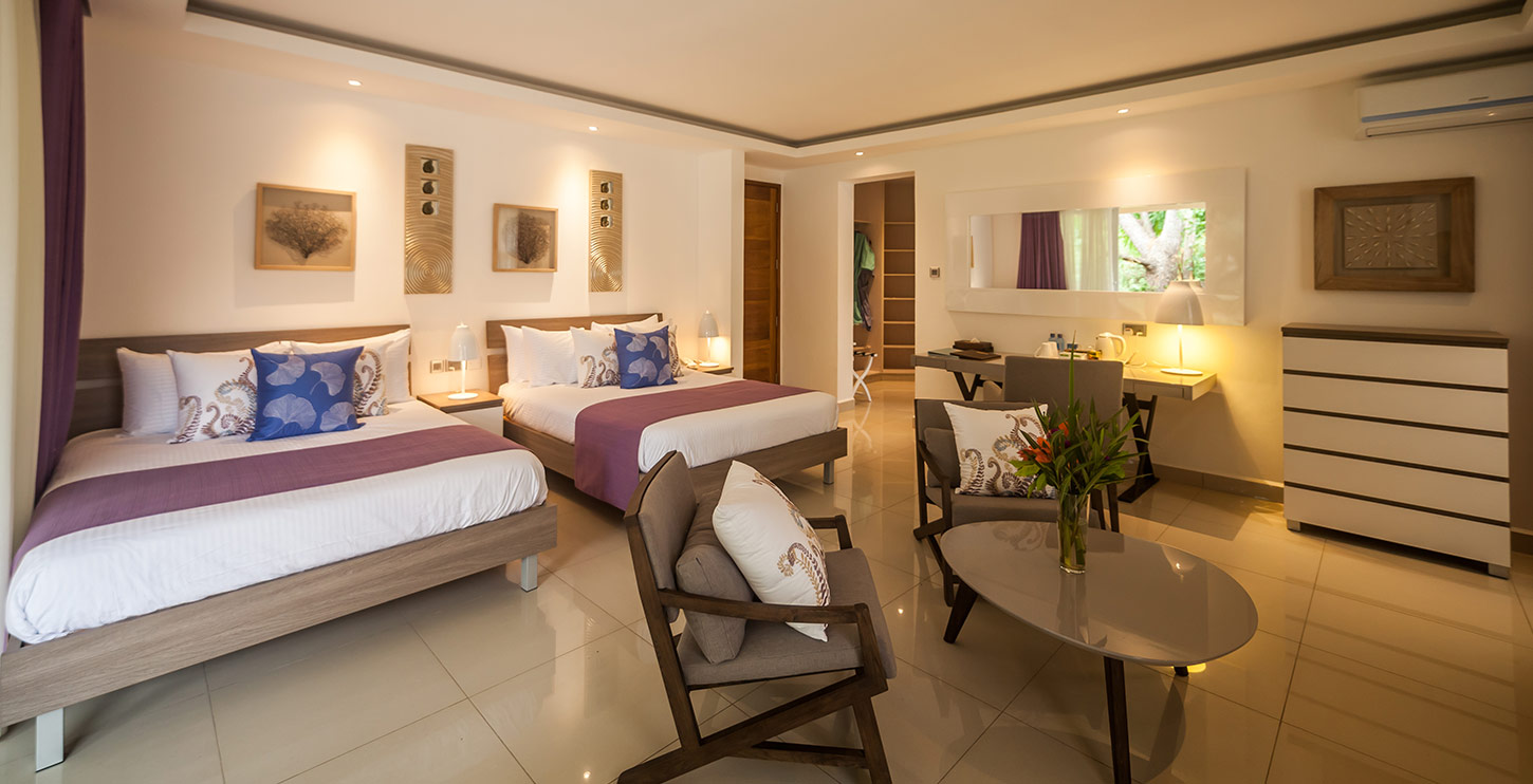 SEAVIEW SUITES Готель пропонує люкс з видом на море, в тому числі напівлюкси для молодят, двокімнатні люкси Superior і люкси Executive. Всі люкси мають власні сади або патіо і мають захоплюючий вид на океан. Люкси пропонують великі спальні з зонами відпочинку, всі вишукано обставлені в стилі ротанга; та усамітнені тераси або патіо з шезлонгами або ліжками Lamu.