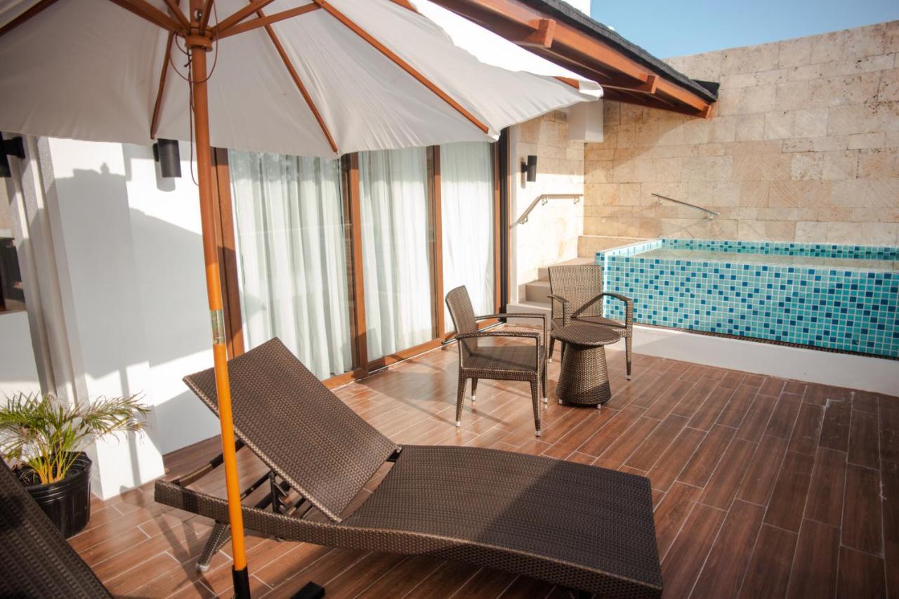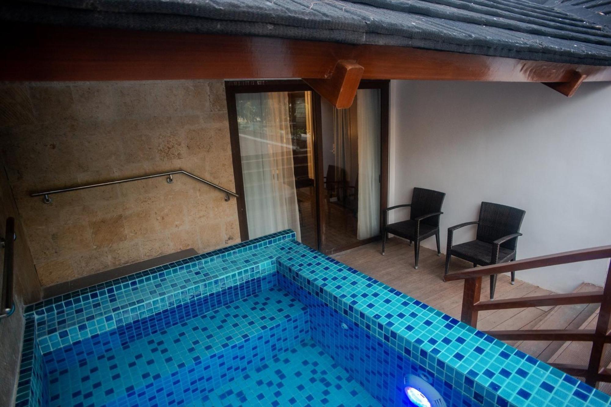 Suite 44 m, 1 Ліжко King-size. Особливістю цього люкса є приватний басейн. Люкс із кондиціонером, 1 спальнею та 1 ванною кімнатою з душем і біде. У цьому люксі є тераса з видом на море, шафа для одягу та телевізор