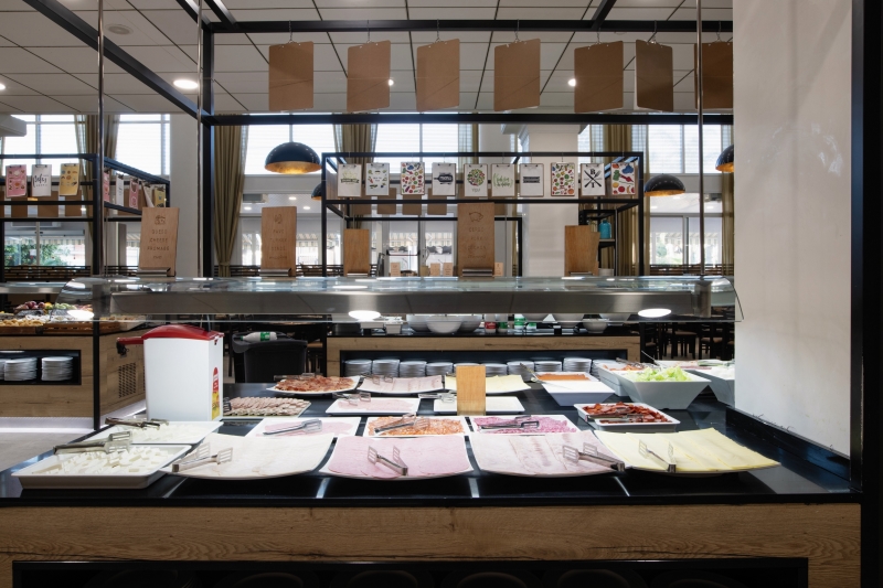 Готель пропонує харчування за системою «все включено», «напівпансіон», «повний пансіон» і тільки сніданки. Обід і вечеря подаються за системою «шведський стіл». Для харчування є ресторан з терасою (безглютенові та вегетаріанські страви) і кілька барів, кафетерій, а також бар біля басейну. У меню напоїв готелю національні алкогольні напої (10:00-24:00). На вечерю гостей просять одягнути відповідний одяг у ресторані.